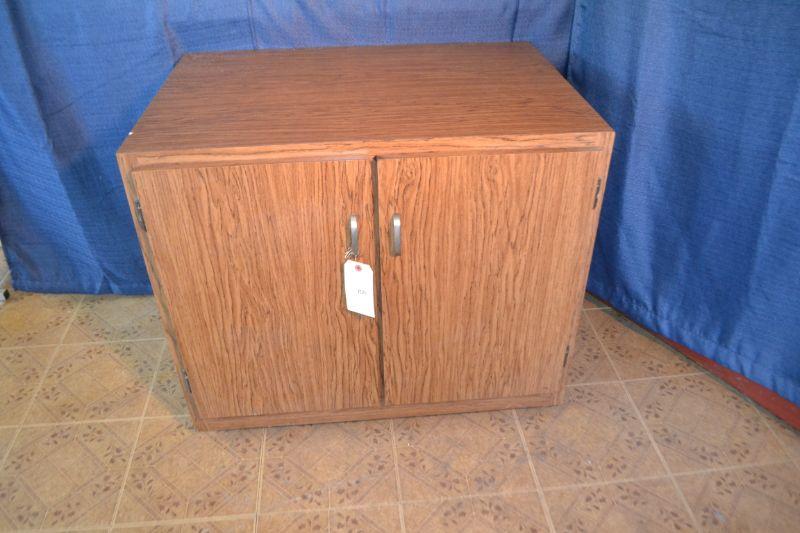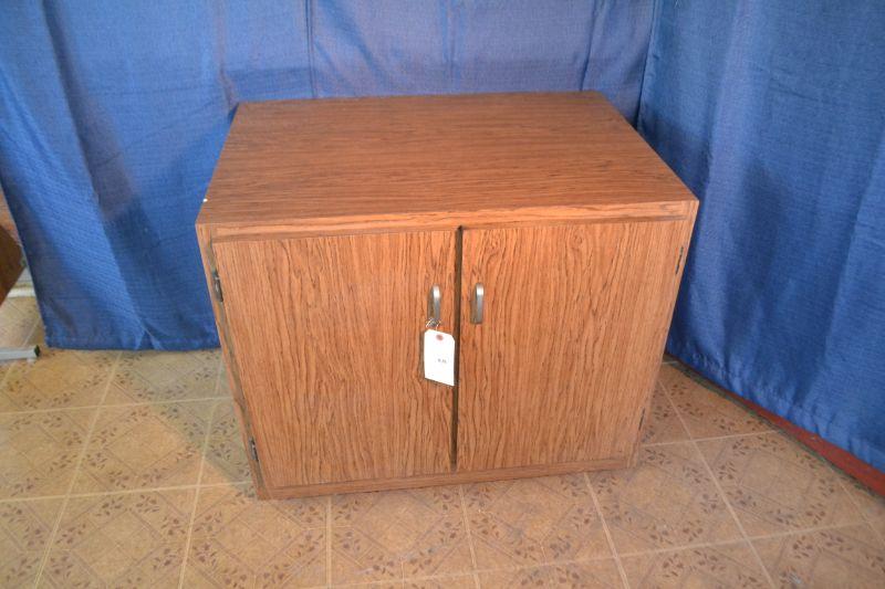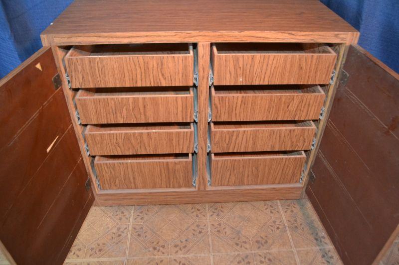 LOT 5. Wood storage cabinet with the slide out drawers. 34 x 24 x 29 inches