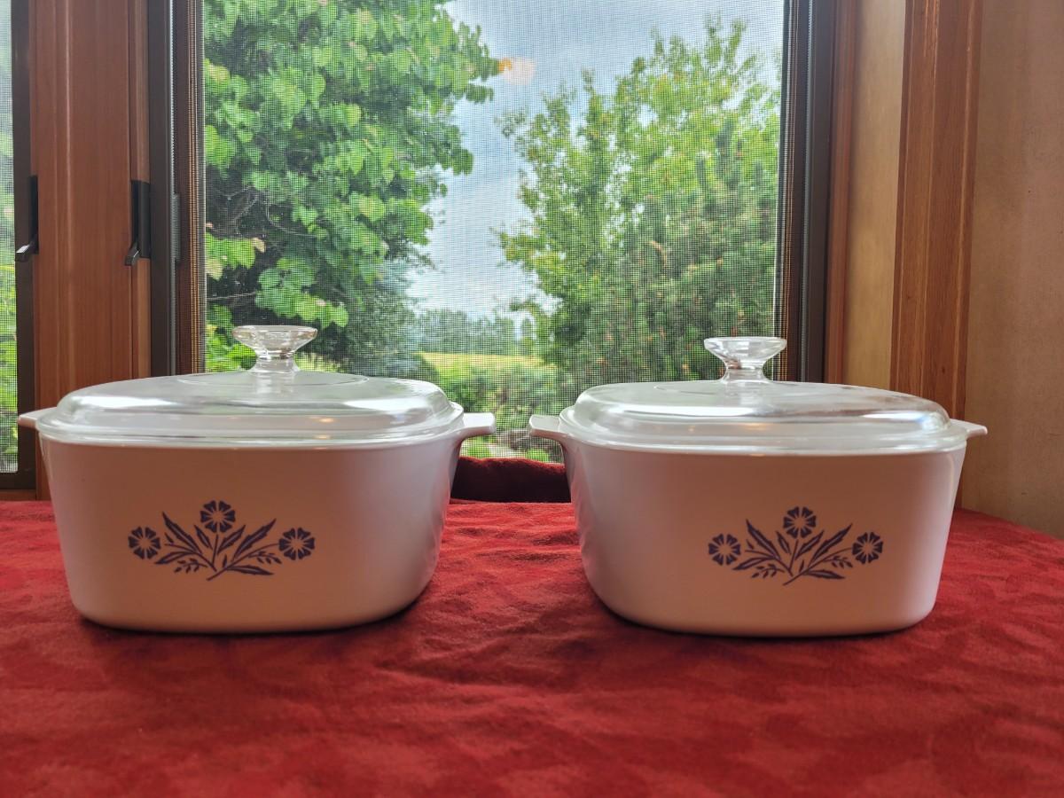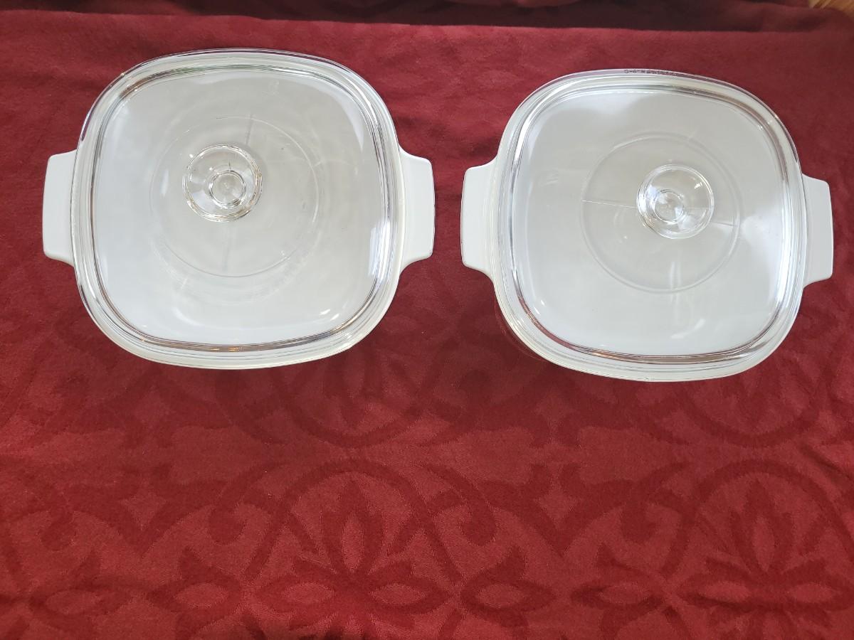 Lot 5: (2) 3 quart Corning Ware Dishes with lids