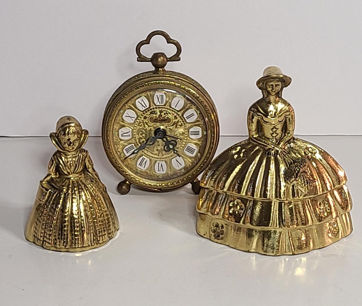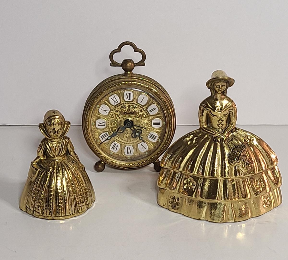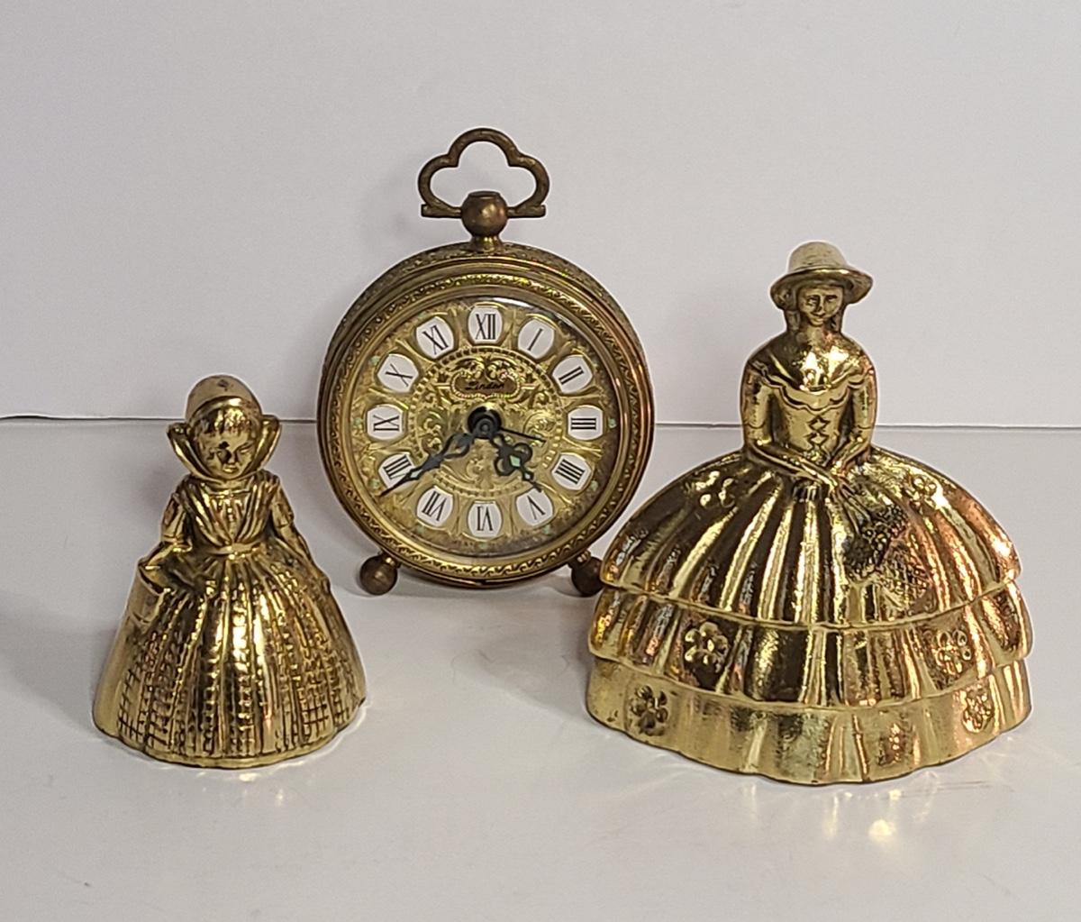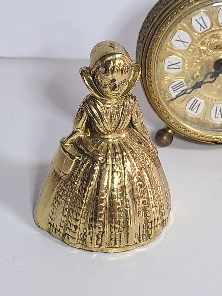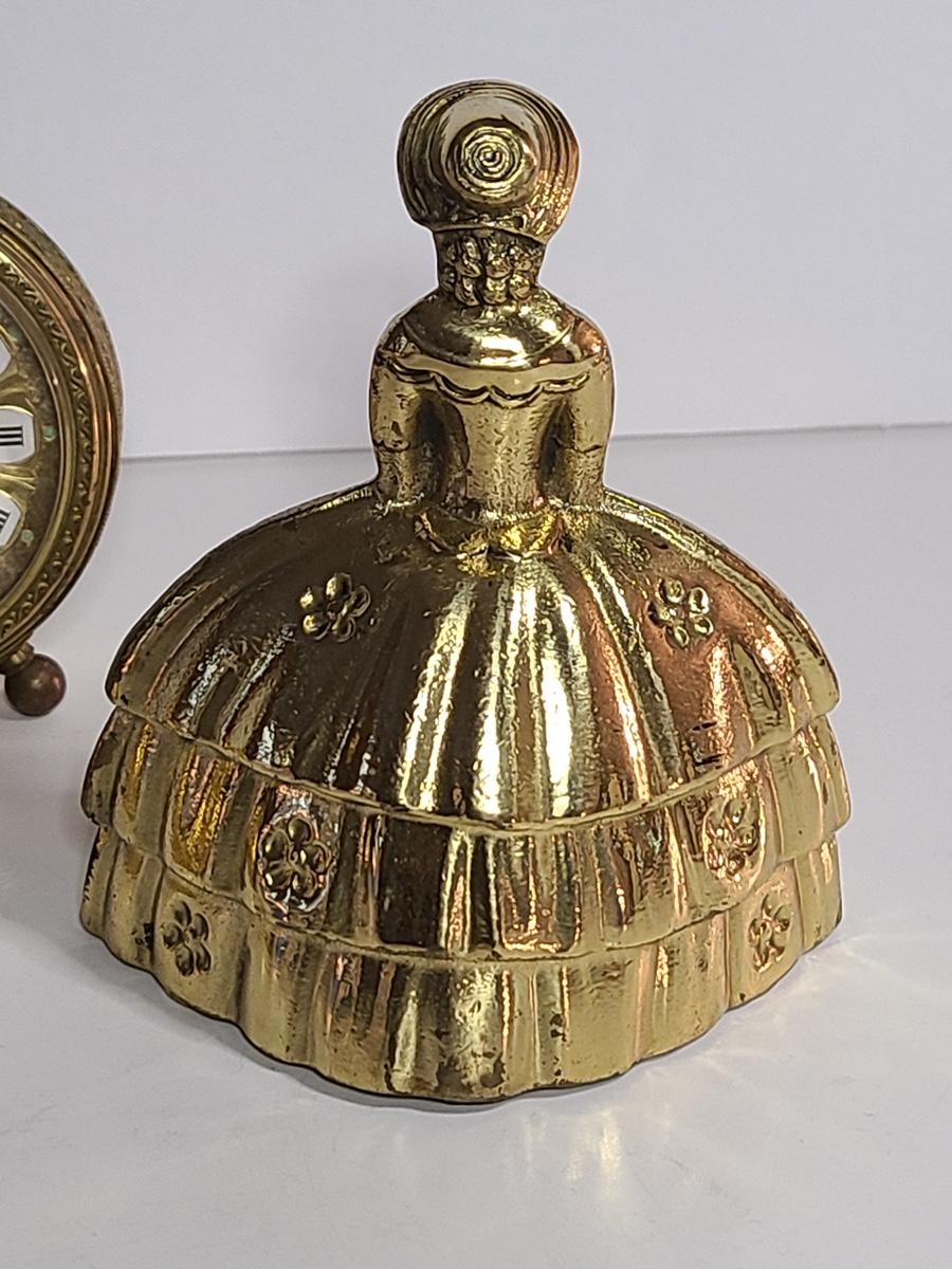 Lot 197: Brass English Tea Bells, and Filigree Linden Alarm Clock