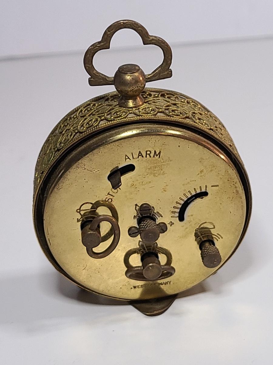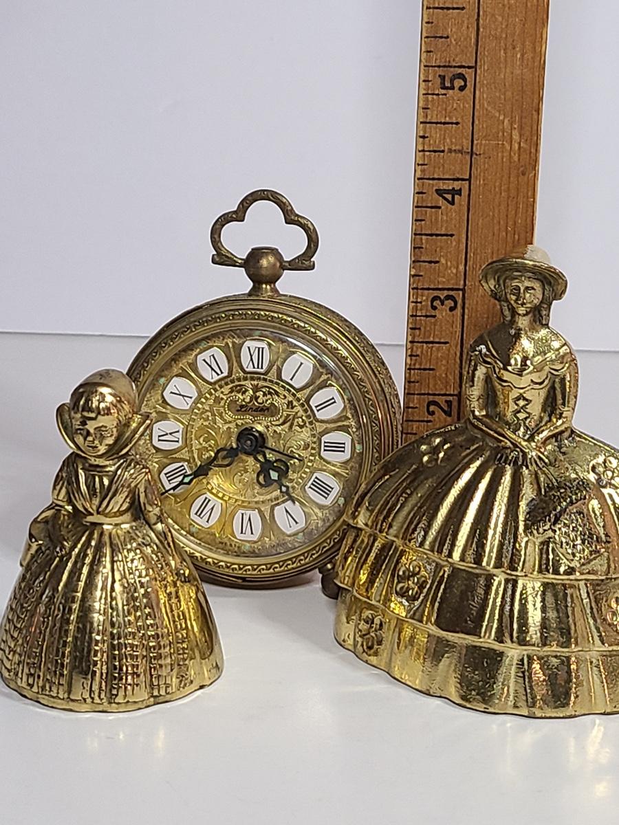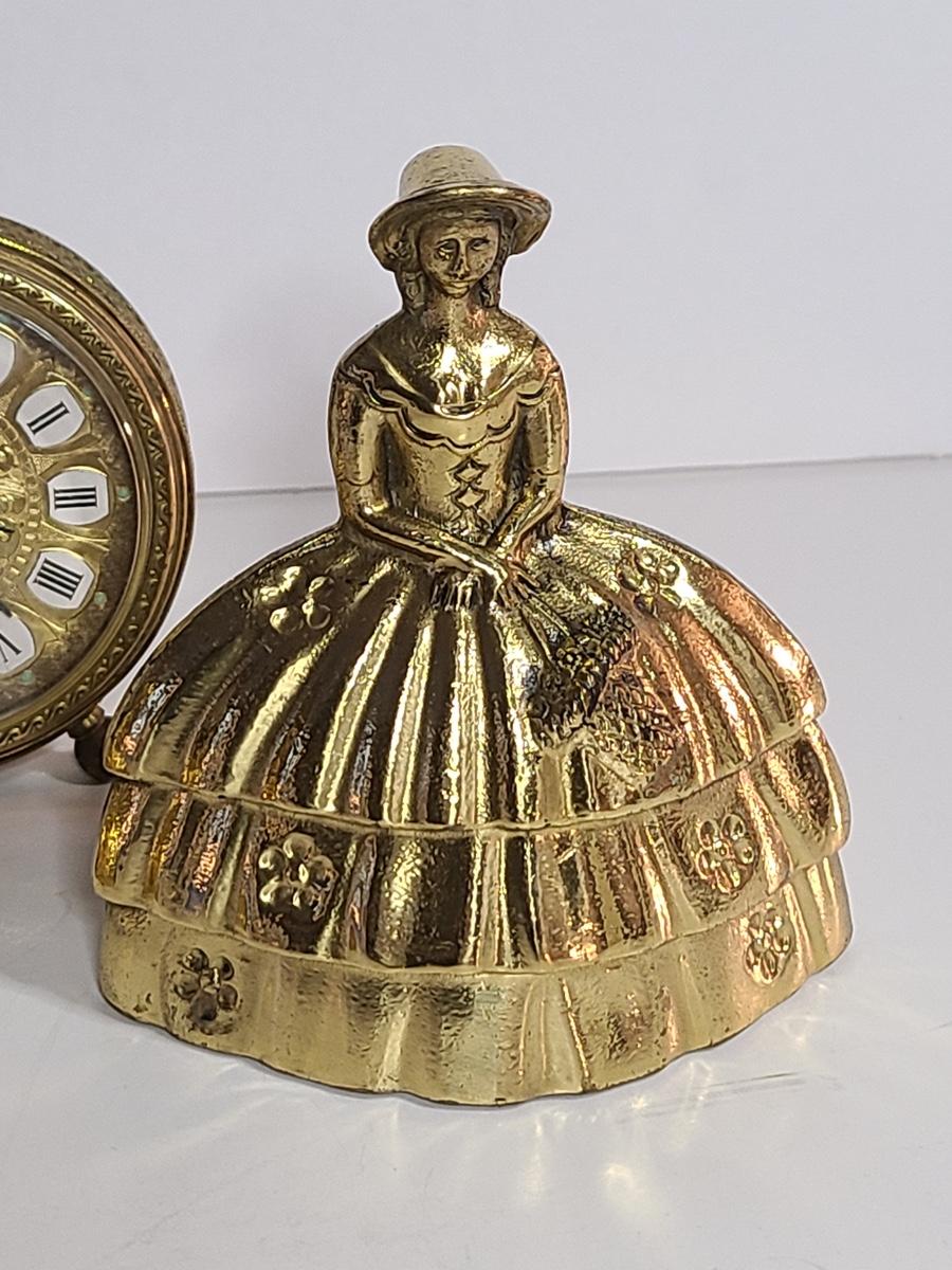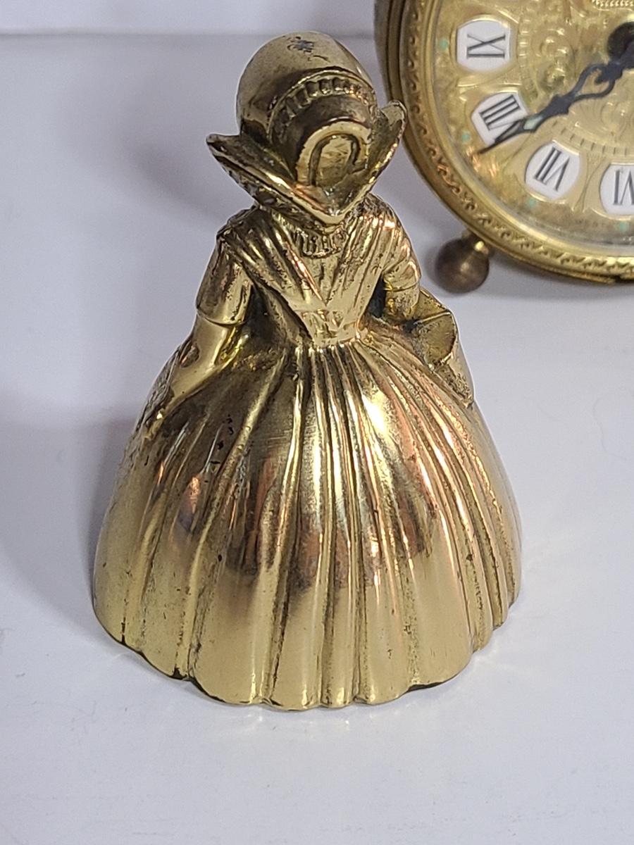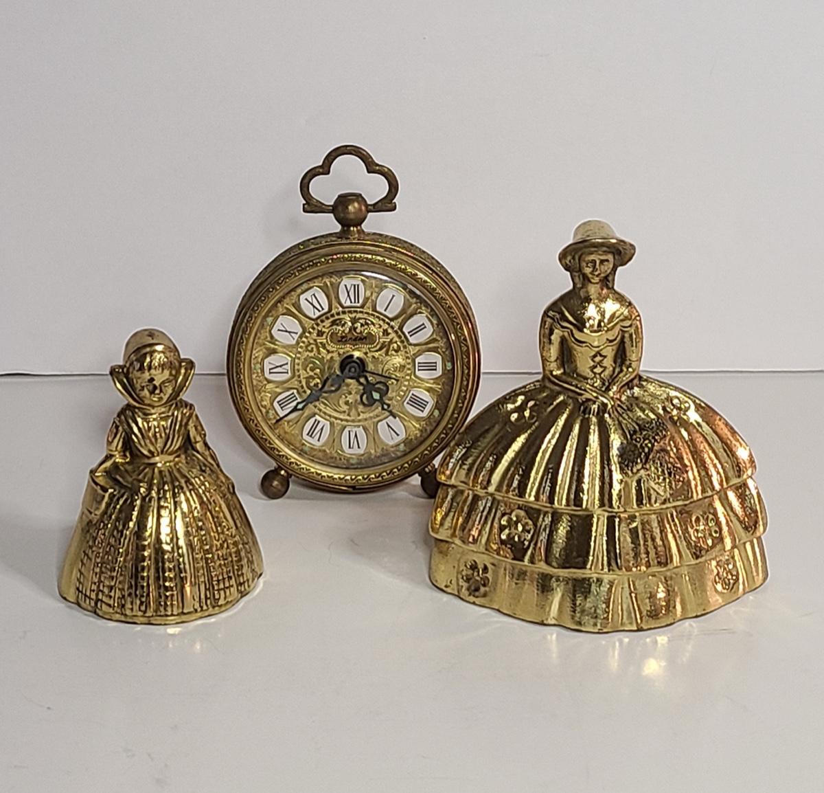 Lot 197: Brass English Tea Bells, and Filigree Linden Alarm Clock
