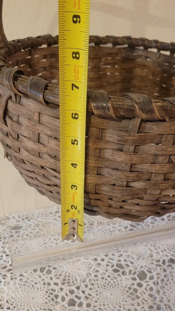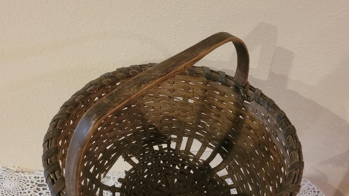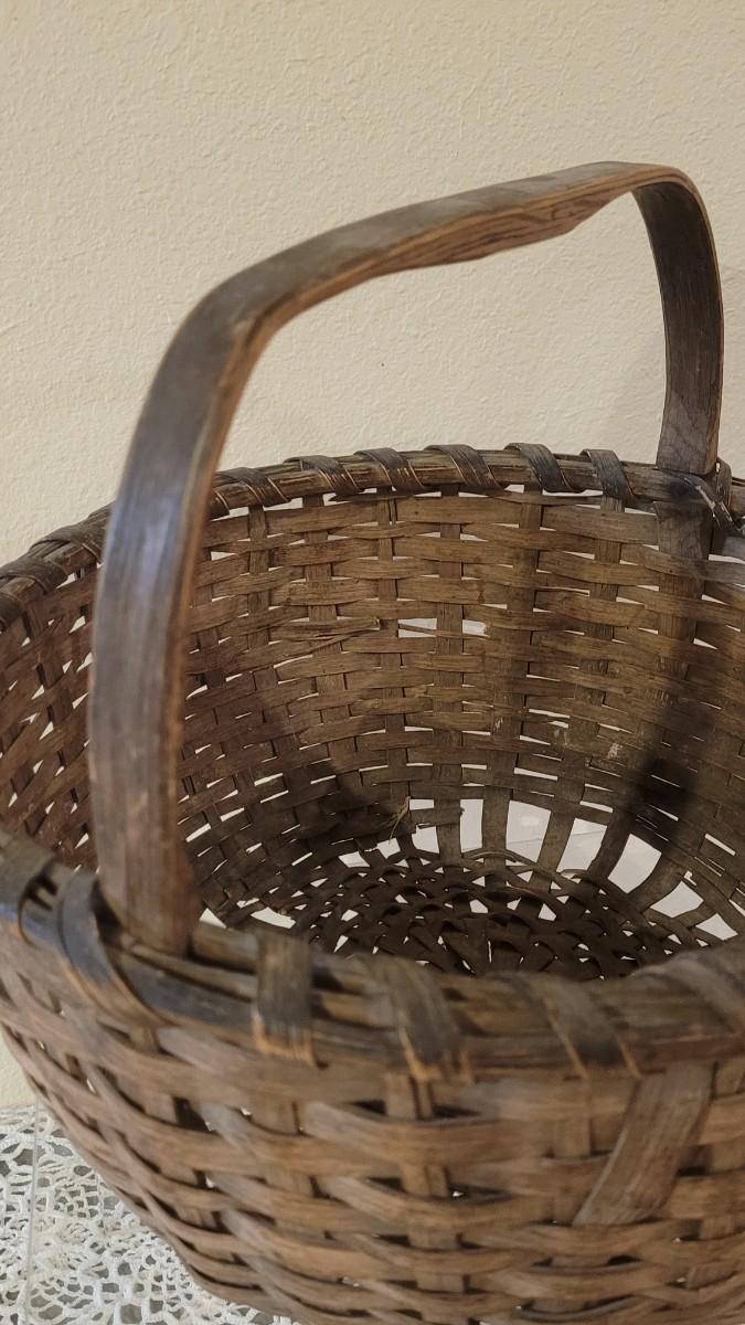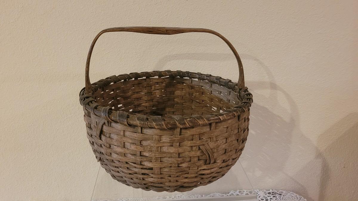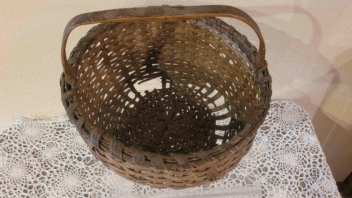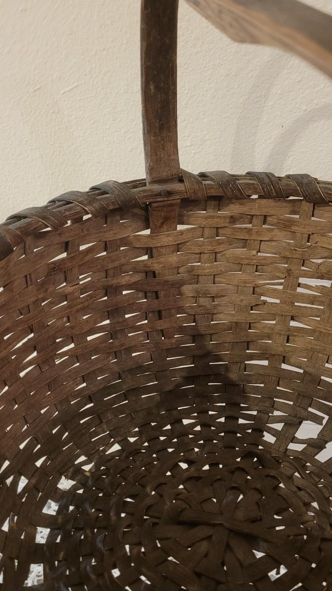 Lot 6: Antique Primitive 19th c. Splint Wood Gathering Basket with Wood Handle