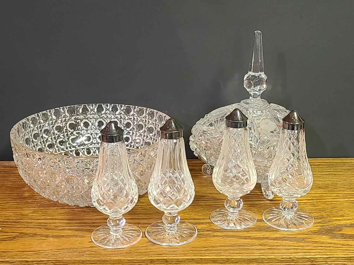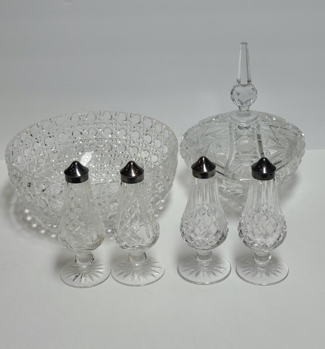 Lot 214: Waterford Footed Crystal Salt/Pepper Sets & More