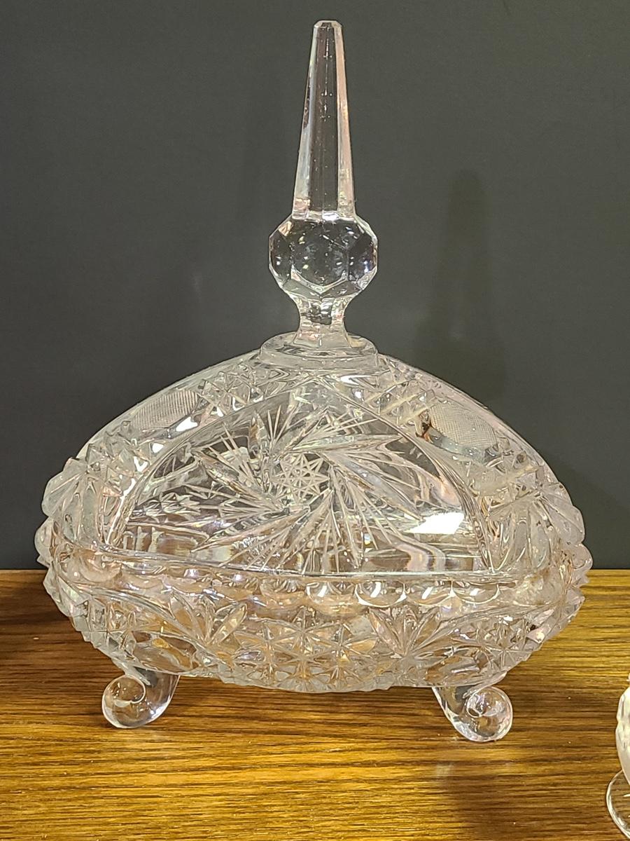 Lovely lot of serving pieces included cut crystal lidded candy dish, and two different sets of Waterford footed salt and peppers. These might need a light cleaning. Not stained, we were just unable to clean as we were in a basement. Lovely collectibles! Please see all pictures. The pictures show condition, measurements if taken, and what is included in the lot. Due to the large amount that we photograph and the time frame, we are not always able to take measurements. All items unless noted, are pre-owned and have been used. If you purchased furniture, you must bring help. We do not allow one person to carry large furniture out on their own. Bring help, tools and a truck for the safety of our client’s homes, and your personal safety. Company policy. Thank you