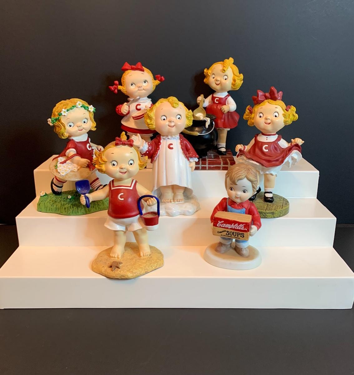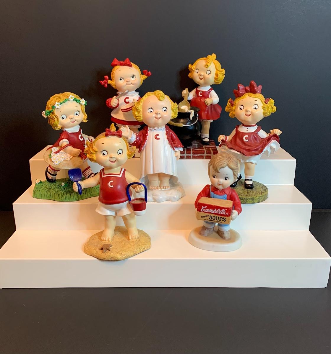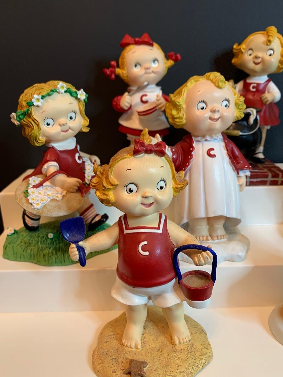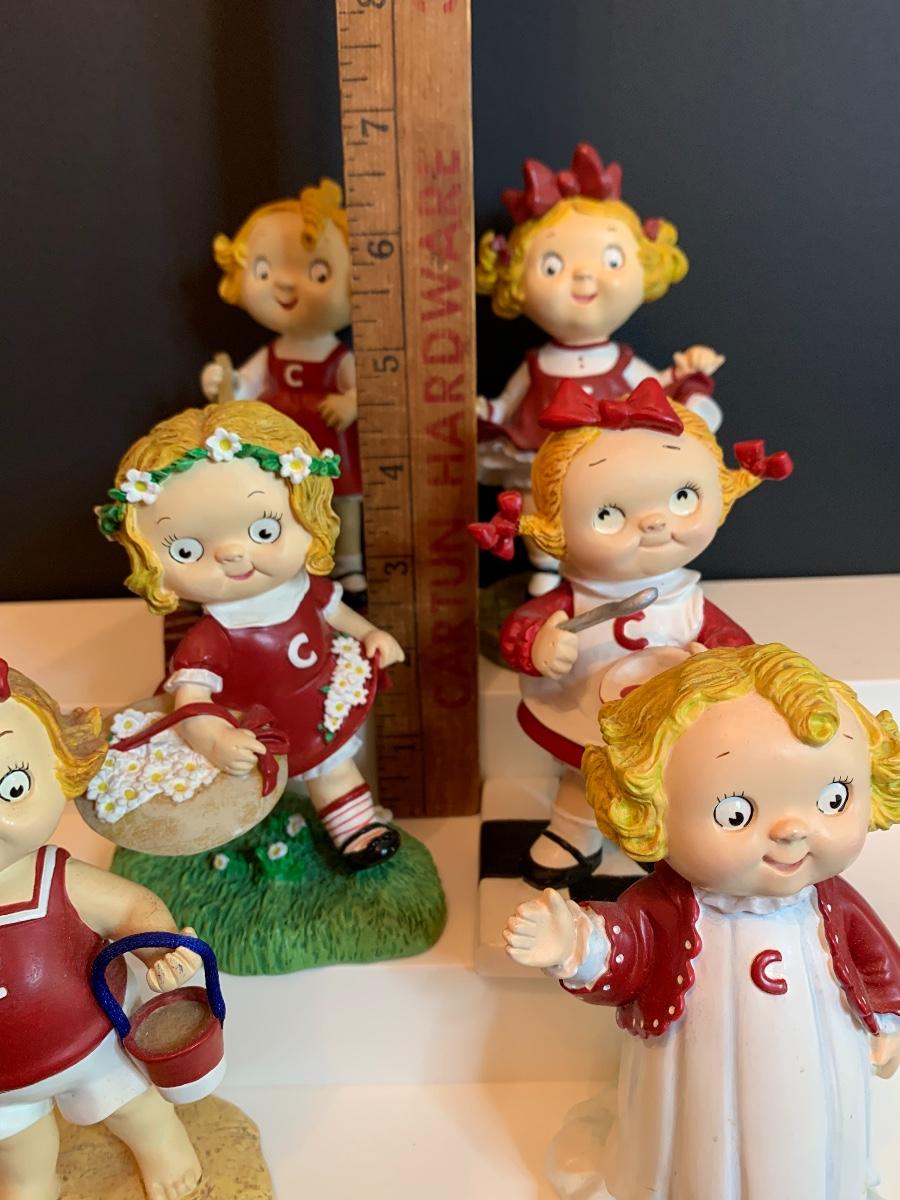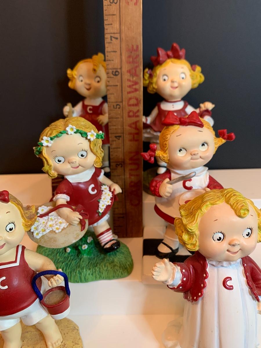 Collectible Danbury Mint Campbell Kids Figures. and more. Please note the Campbell Kid Angel is missing her wings as pictured.