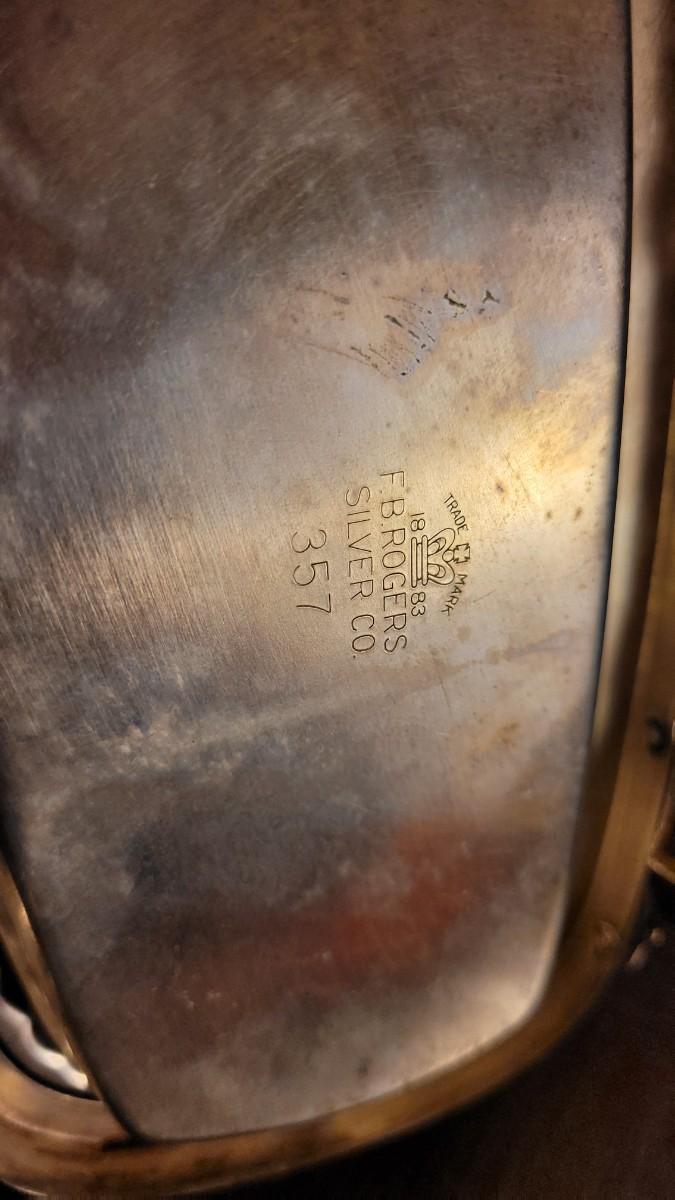 This lot features a fancy Silverplated covered butter dish with a swinging lid that functions perfectly. The Etched glass original insert is intact and undamaged. 7.5 x 4 x 3.5.