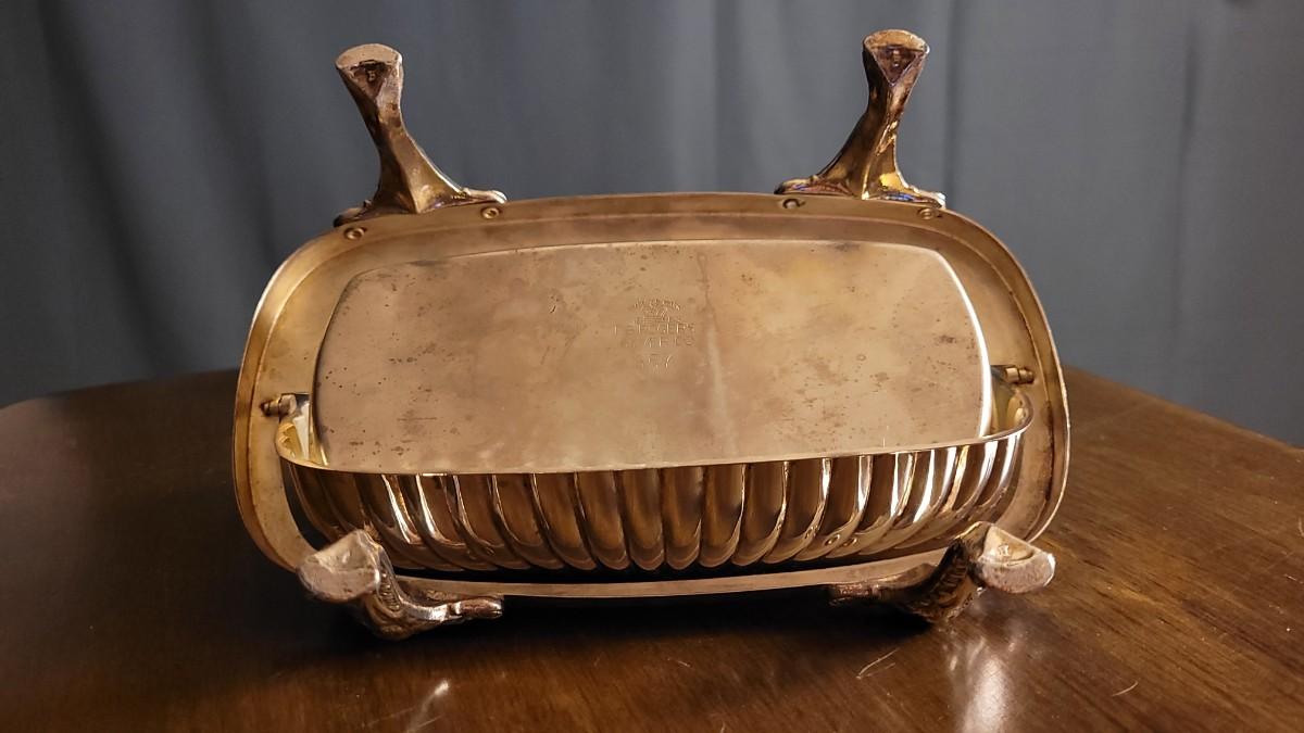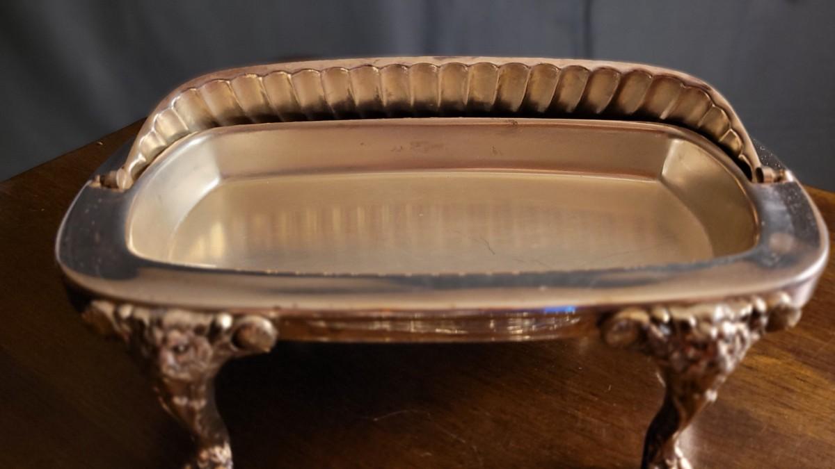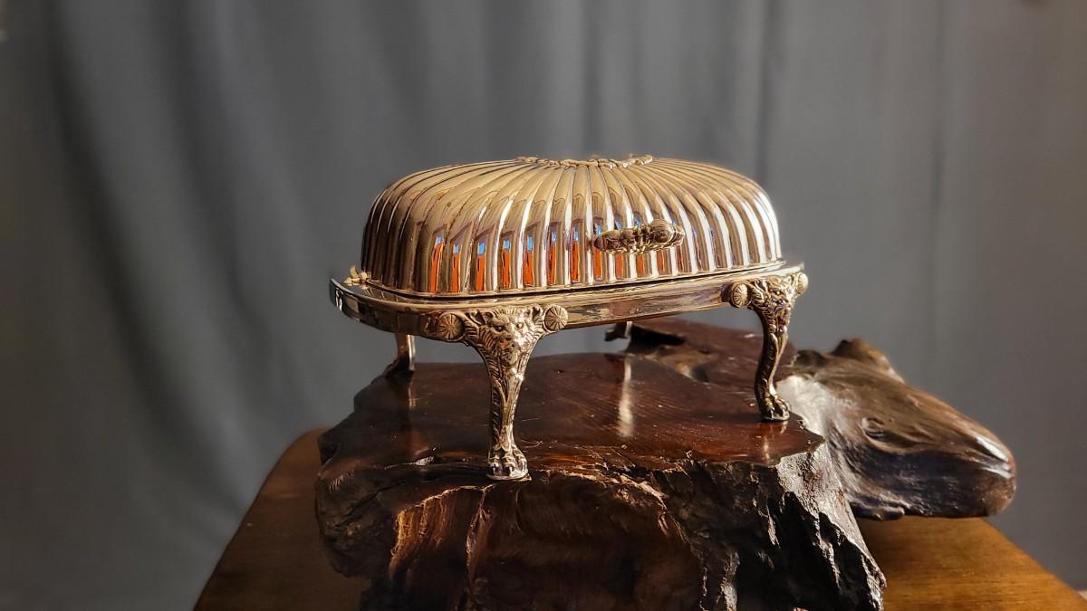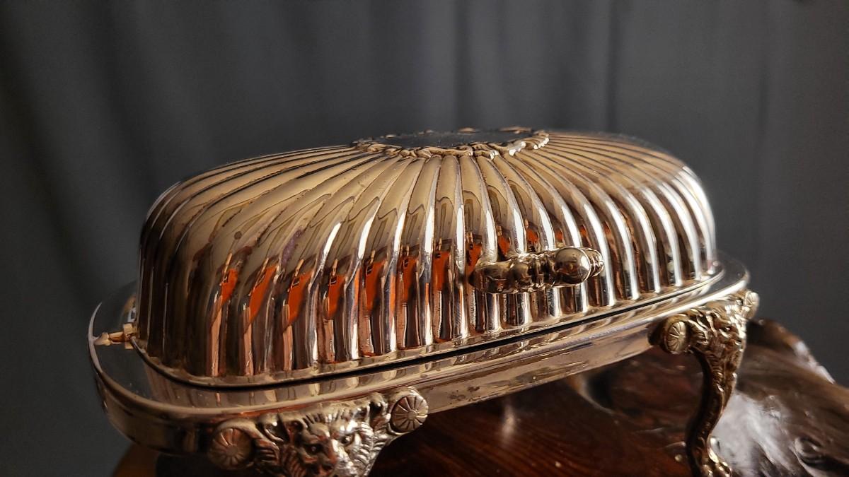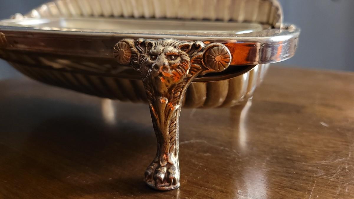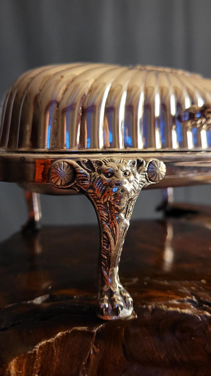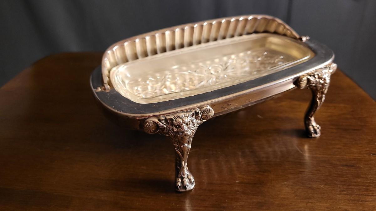 Lot 5: Vintage Heavy Silverplated Fancy Covered Butter Dish w/ Lion Motif Feet