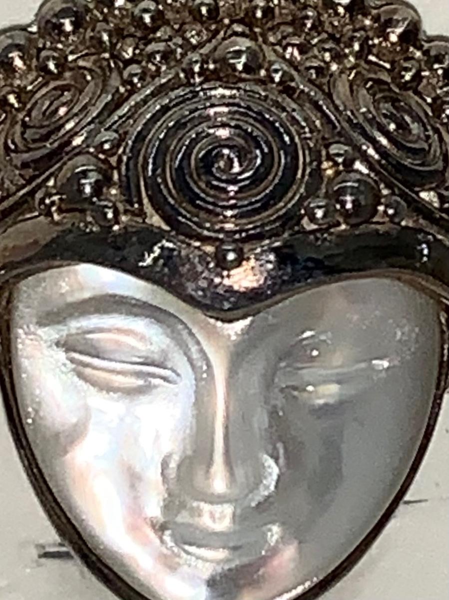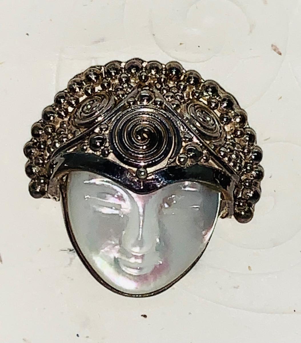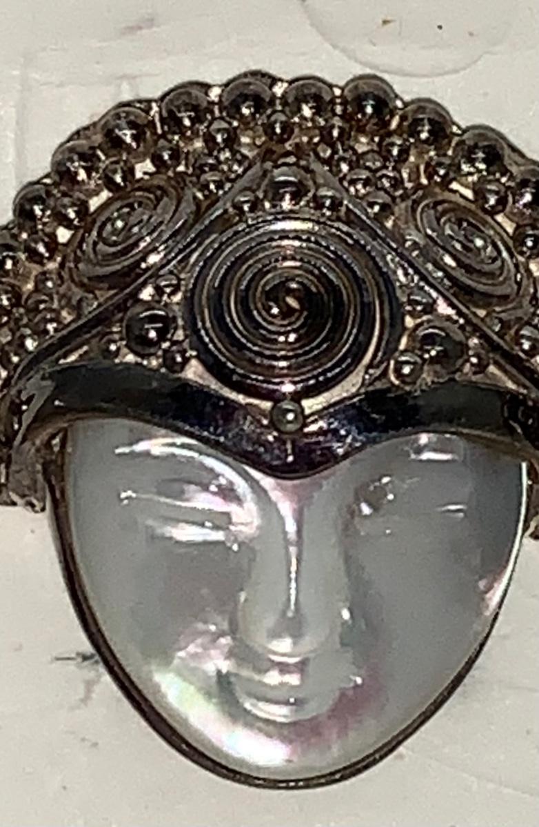 Ornate Sagen 925 clip-on earrings with mother of pearl face.
