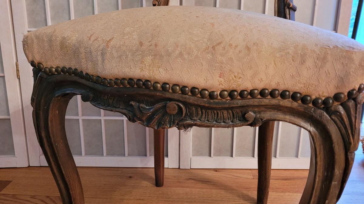 Lot 5: Beautiful Antique Handcarved Chair with Original Cushion