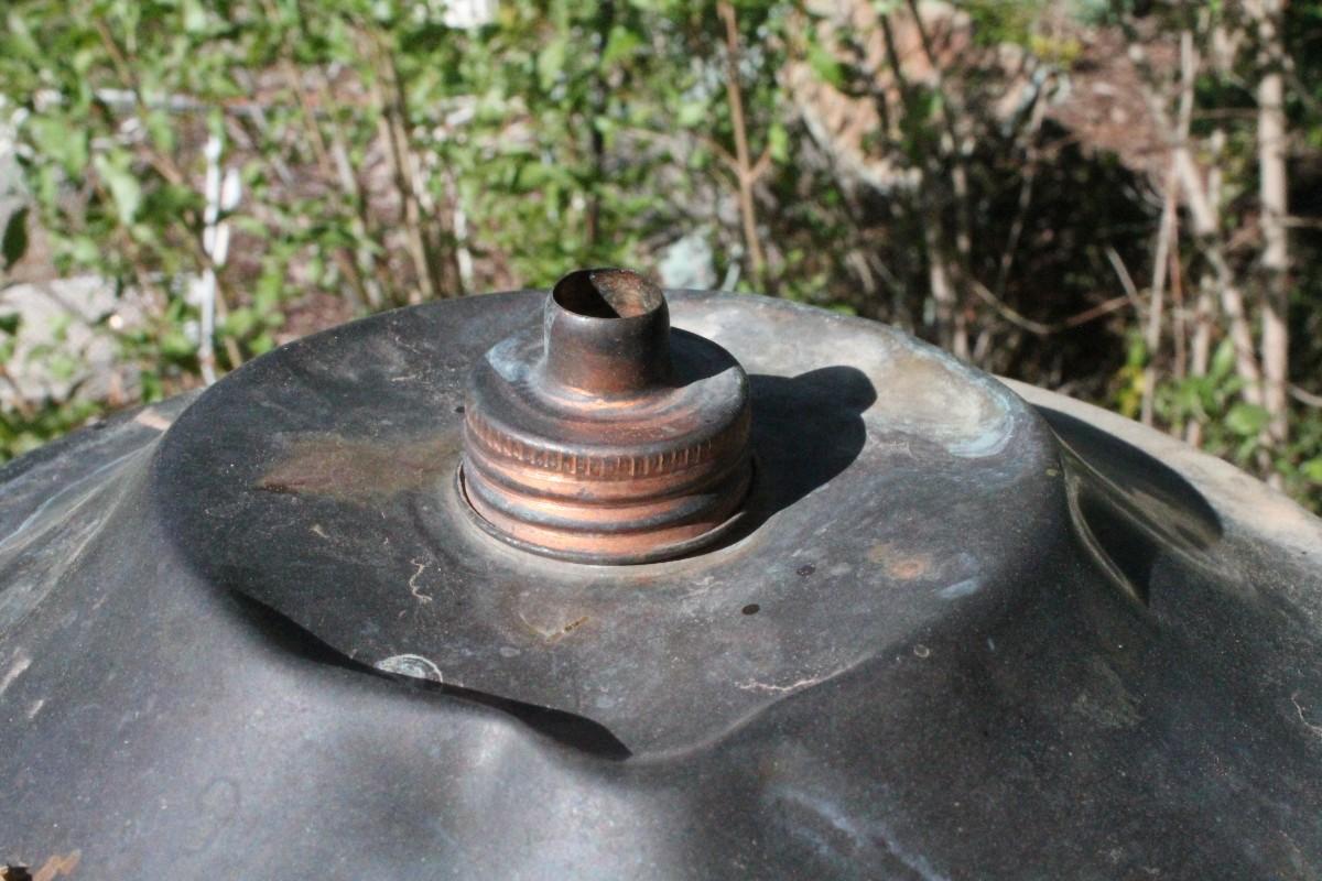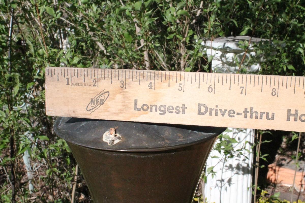 Outdoor Mosquito repellant canister with about 20% of the volume filled with existing fluid. About 55" Tall.