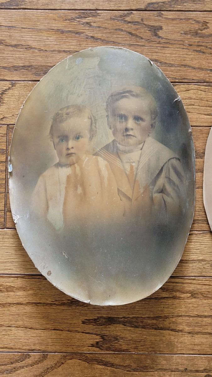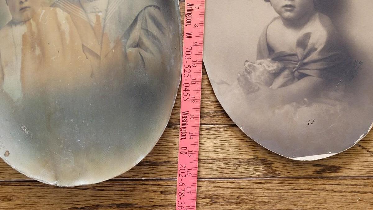 The one with 2 children is wavy. The other one is from Germany and has a torn top.