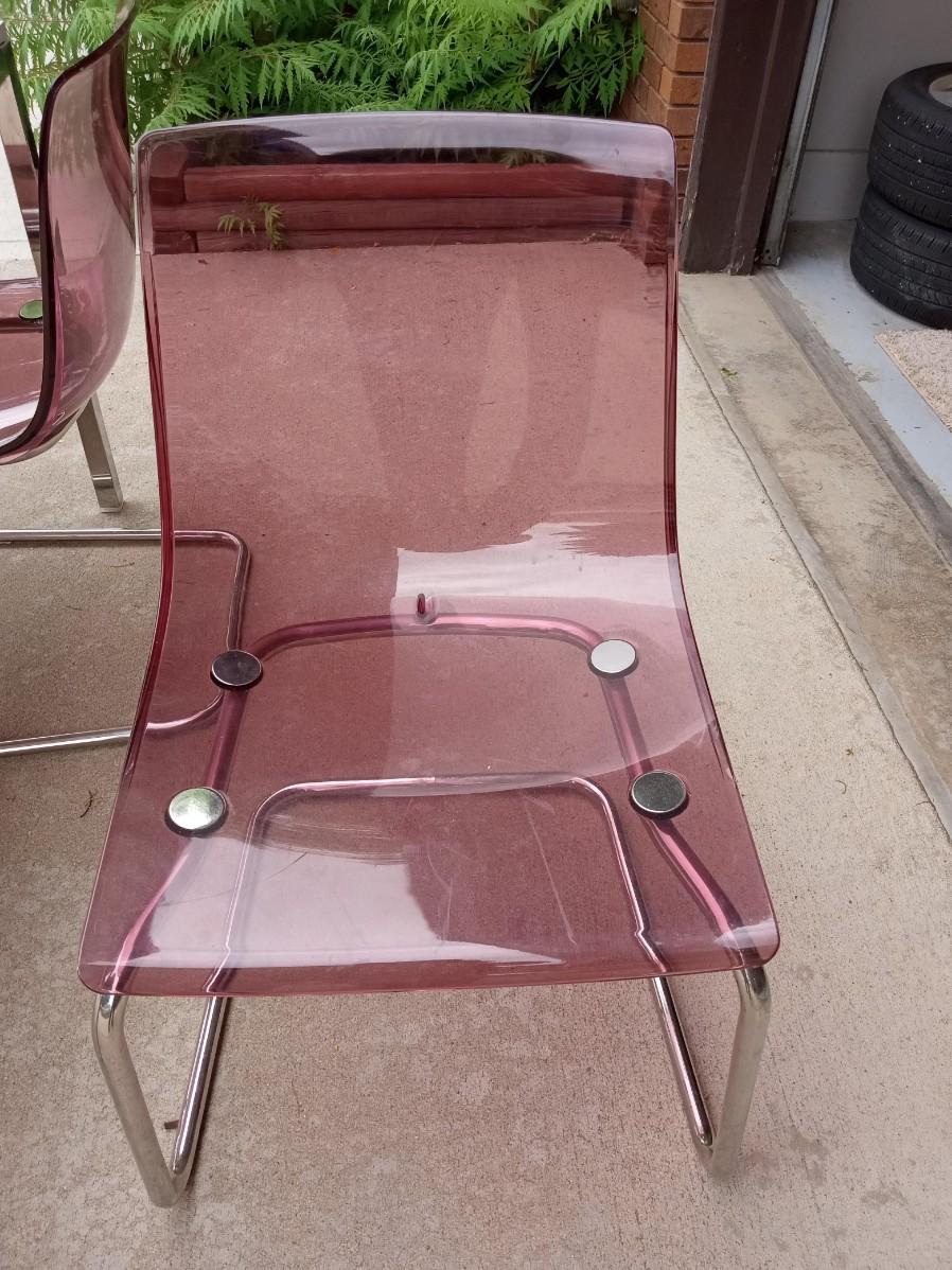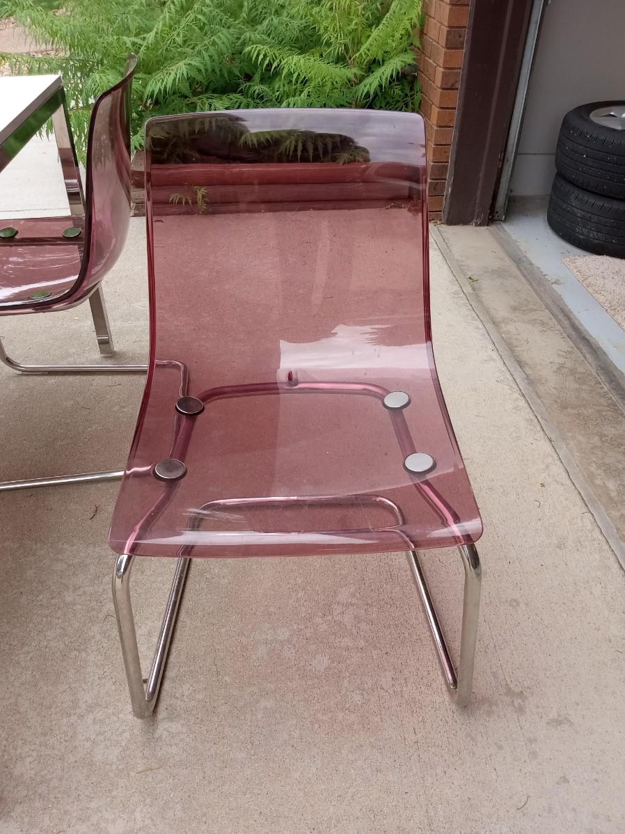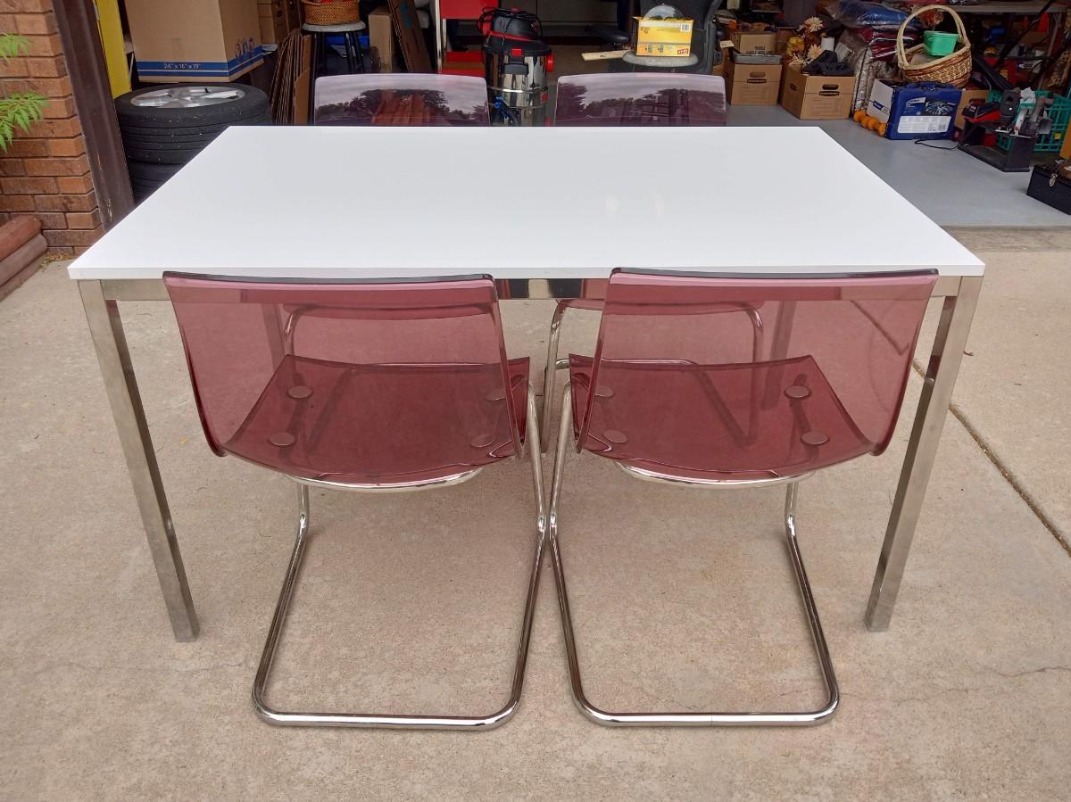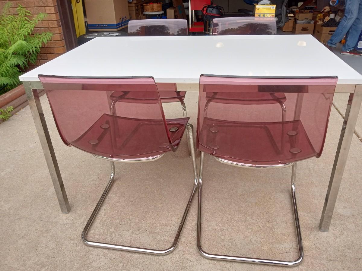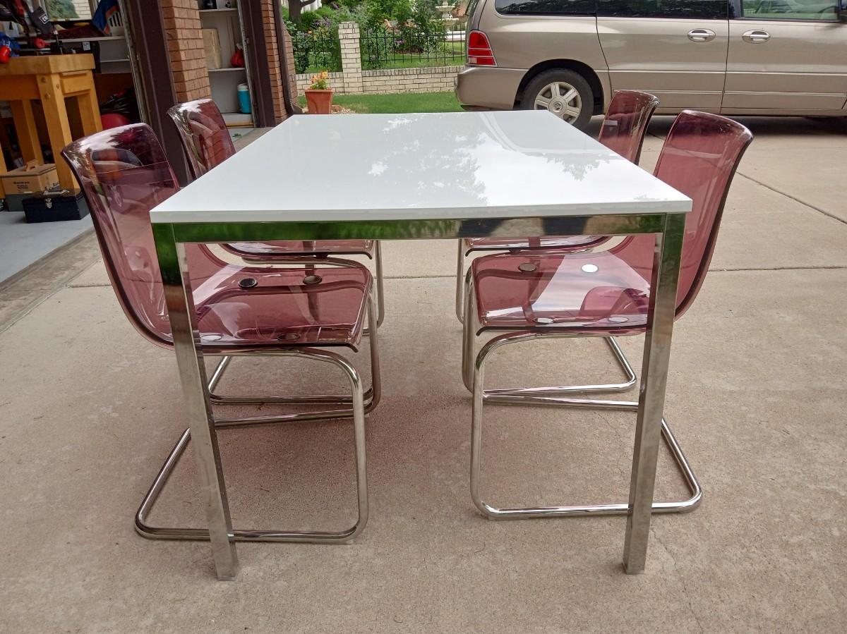 LOT 5  WHITE DINING TABLE WITH 4 LUCITE CHAIRS