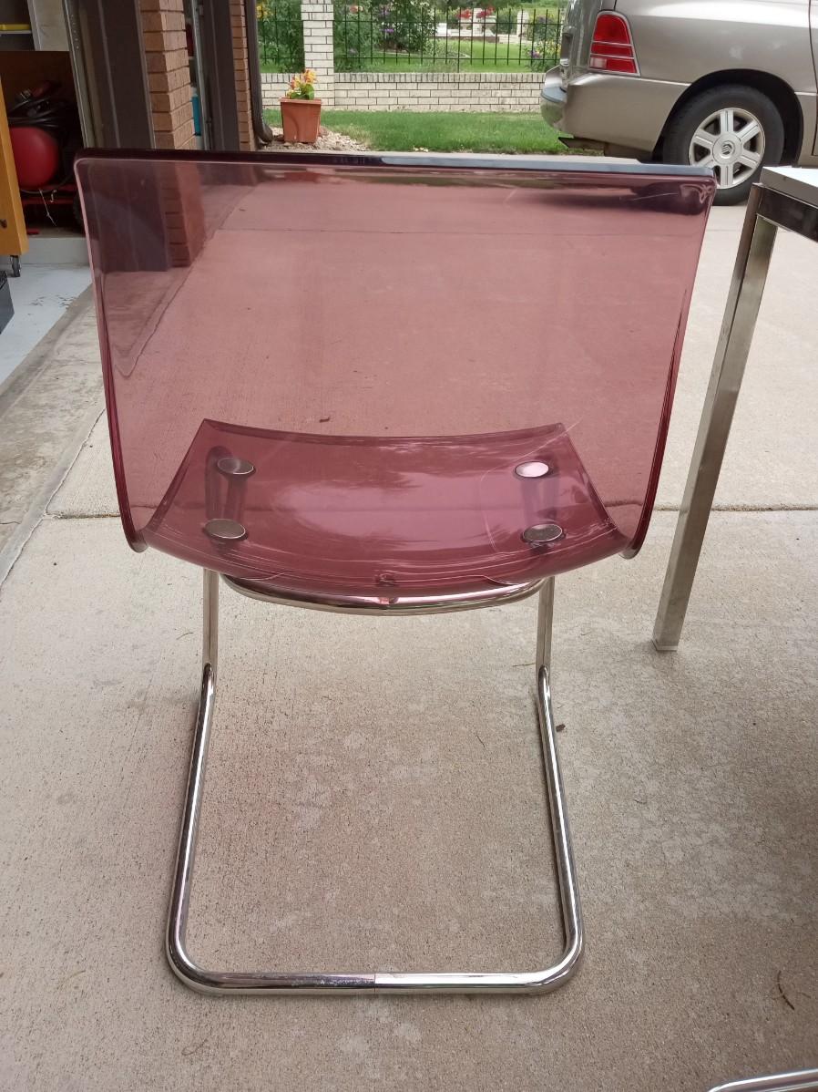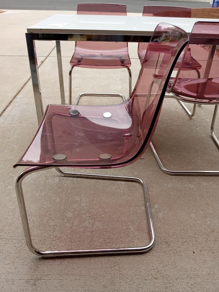 LOT 5 WHITE DINING TABLE WITH 4 LUCITE CHAIRS