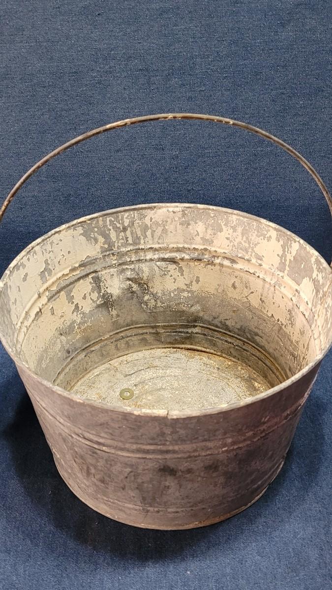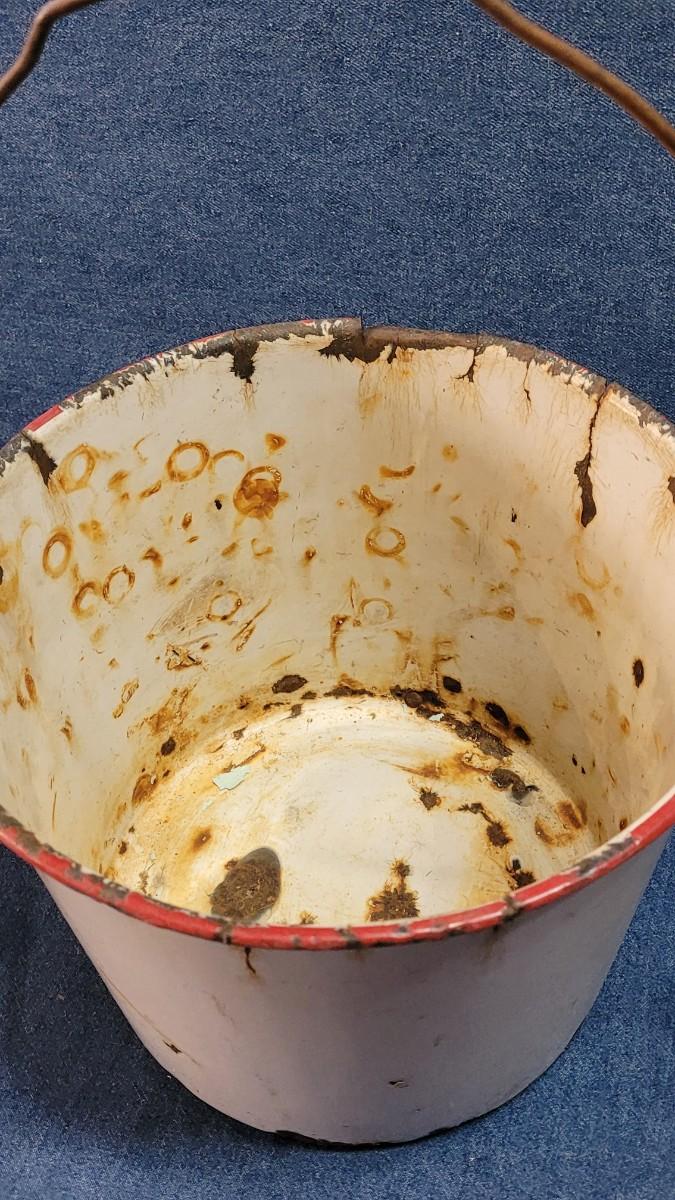 Lot 5: Vintage Red & White Enamel Metal Bucket and Galvanized Metal Bucket