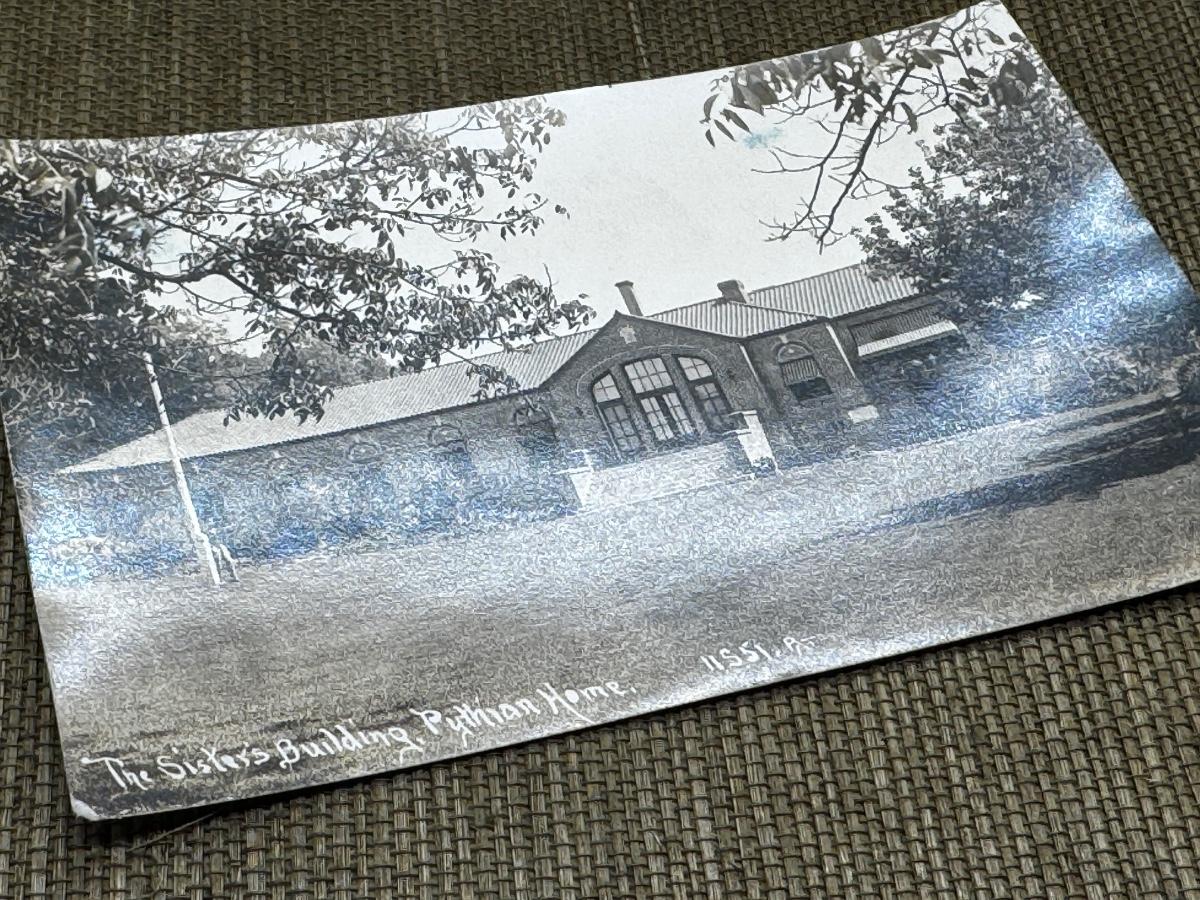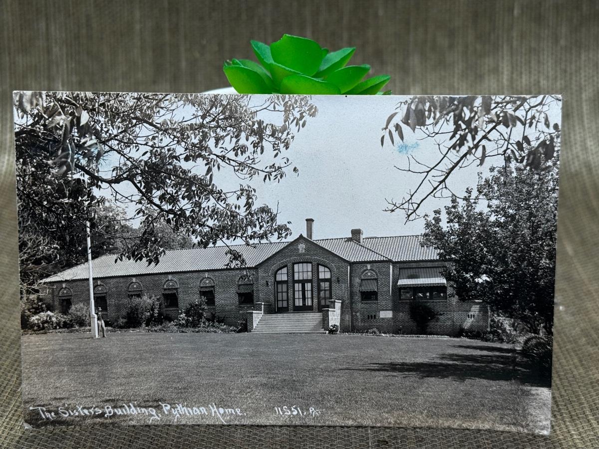 LOT 5 - Santa Rosa RPPC Postcard Pythian Home The Sister's Building. The actual color of the photo post card is more sepia than what appears here. No amount of editing could match the real color. My apologies. Small blue mark as you can see in photo 3. Back of card also has marks.