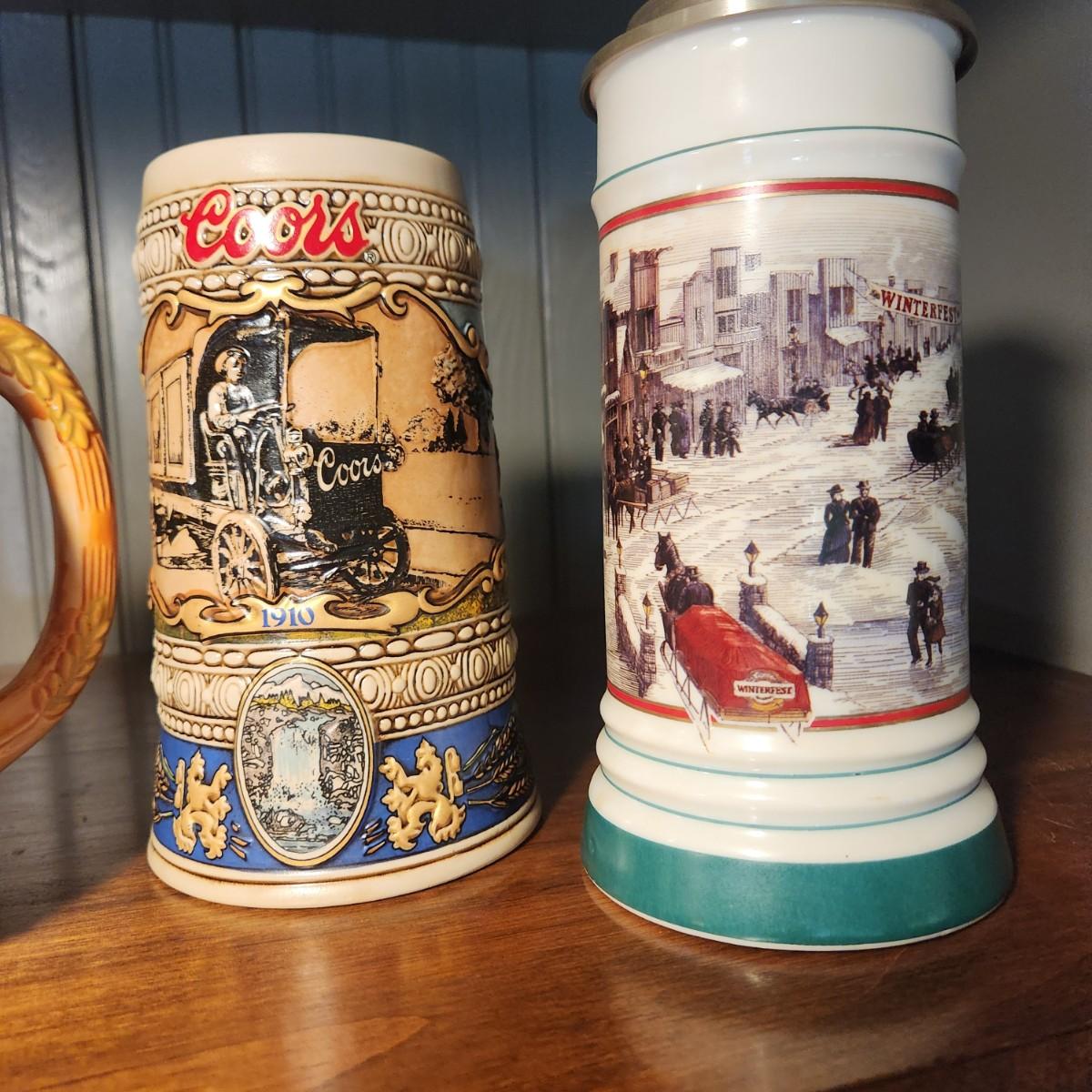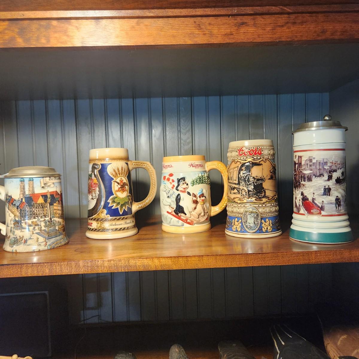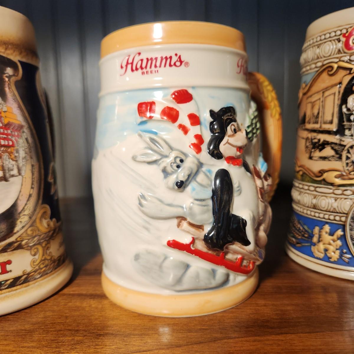 Lot 5 Beer Mugs Steins Budweiser Hamm's Coors Bar Barware