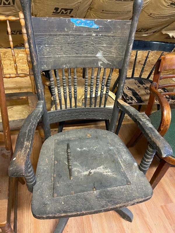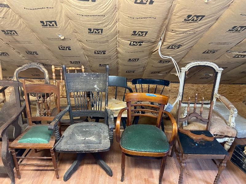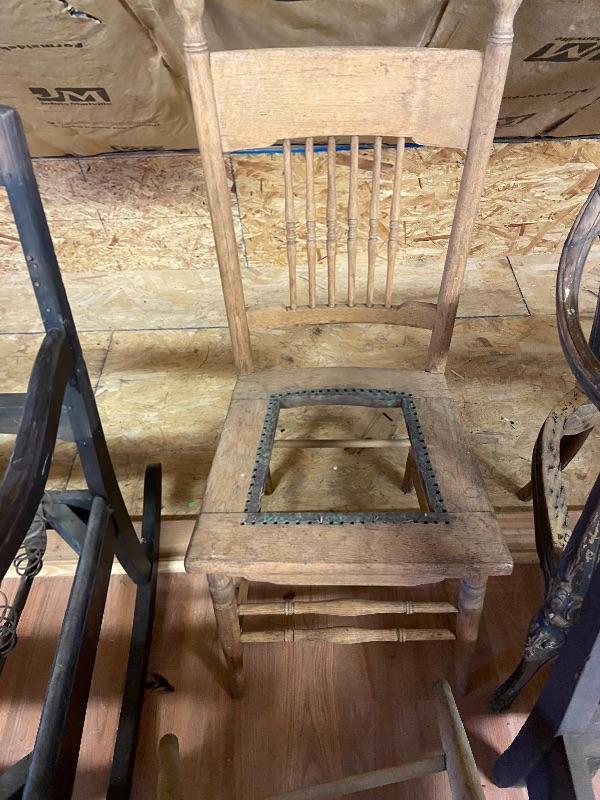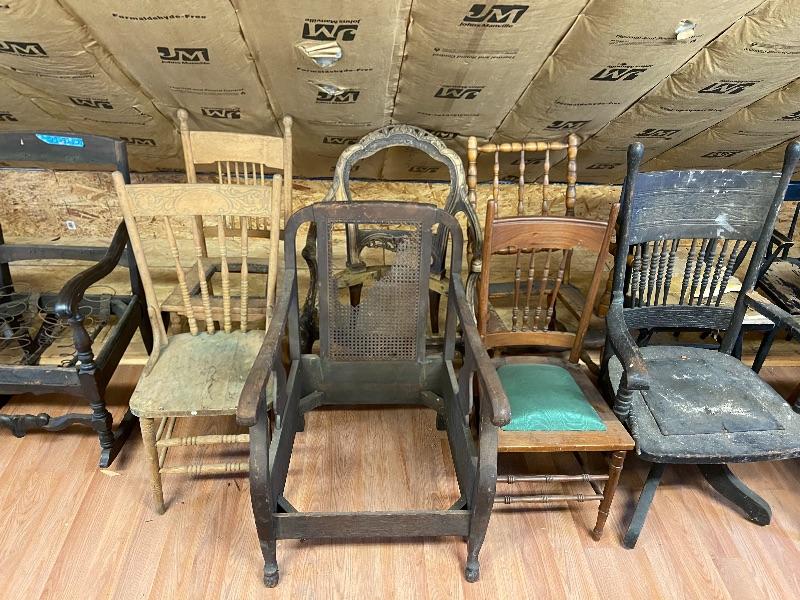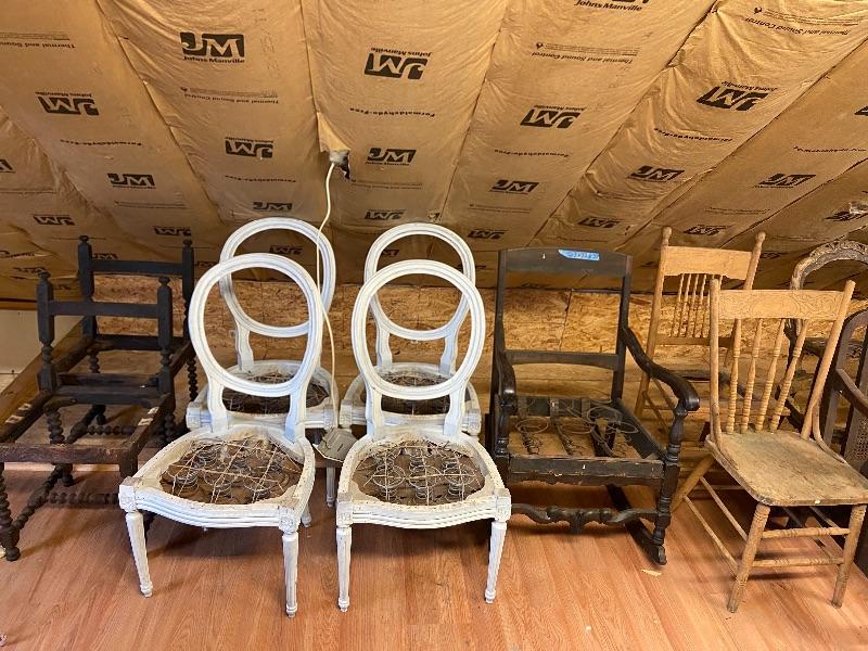 Vintage and antique chairs and rockers. Great project pieces. Bring help to move from second floor.