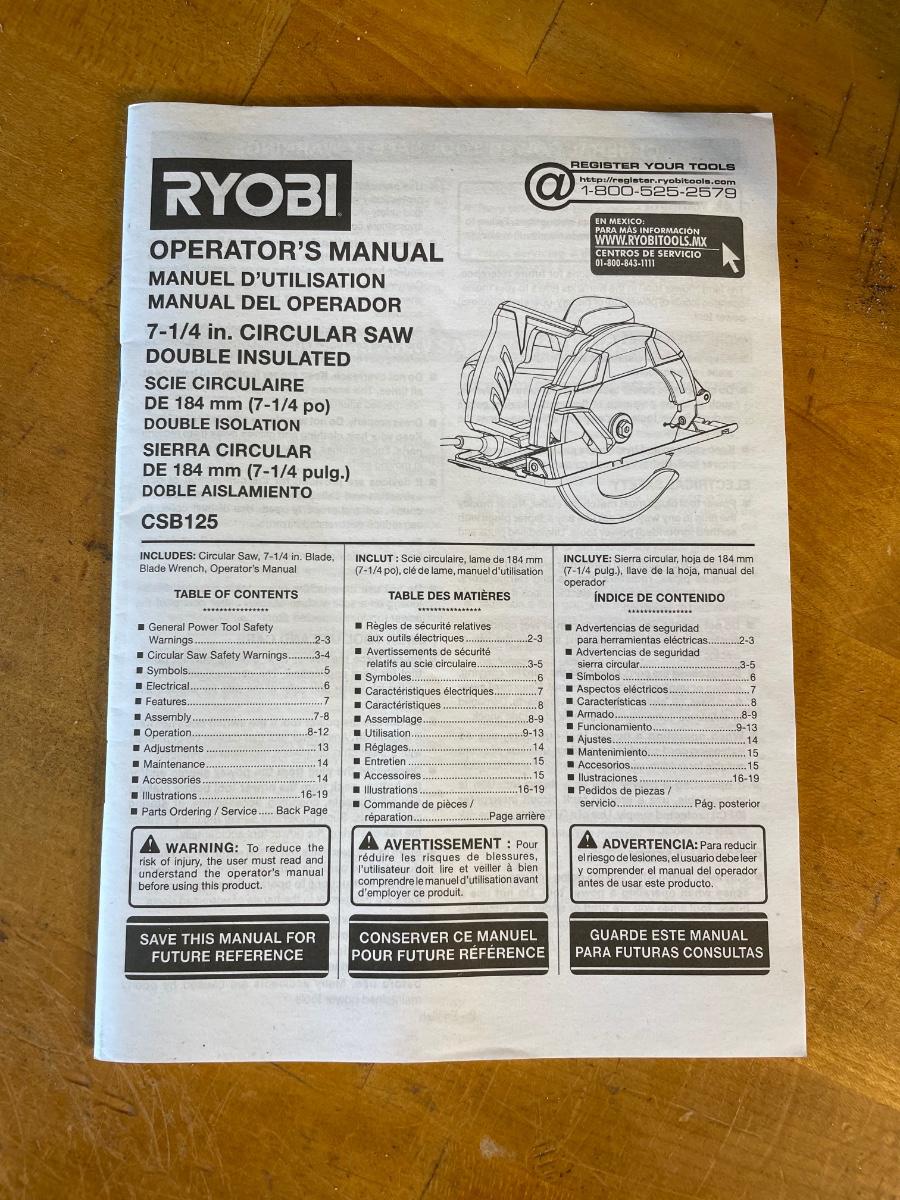 Ryobi 7-1/4" Like new. Includes owner's manual