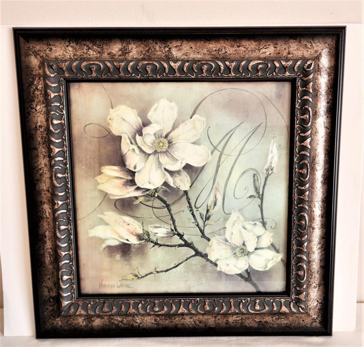 Attractive framed contemporary decorator print - Magnolias - 22" across x 22.5" tall - like new.