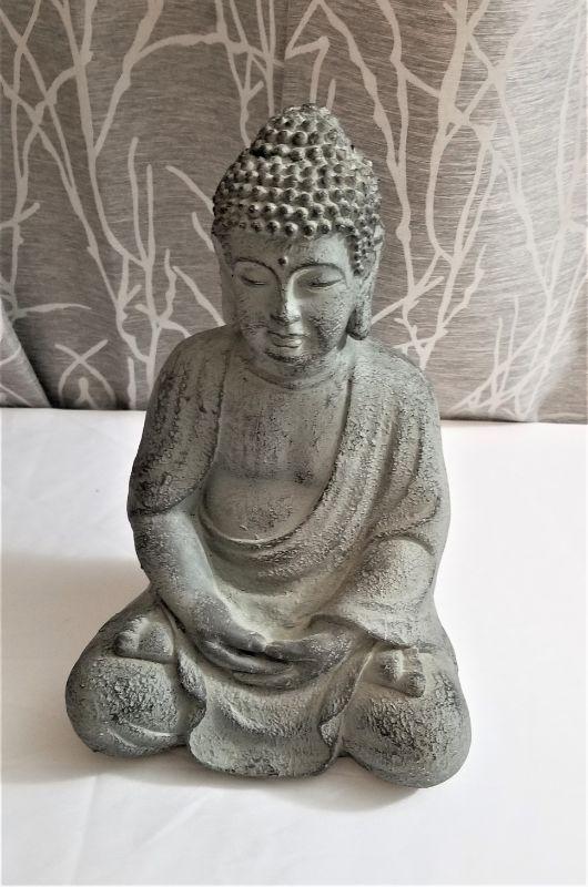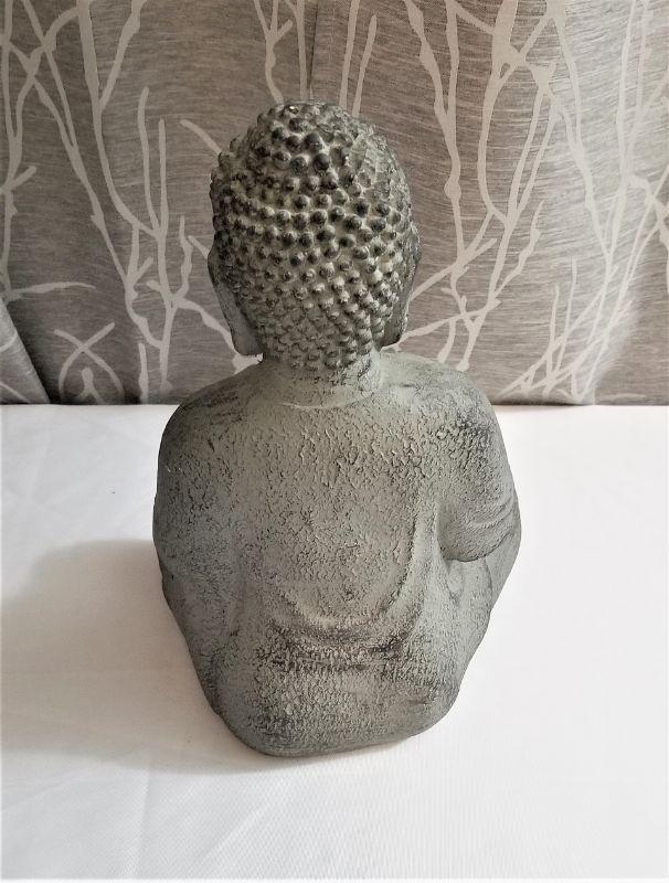His expression is calm and inscrutable - you'll love it. Gray in color - good condition. Measures 1 ft tall, 8" across.