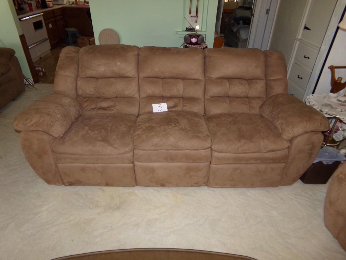 MICROFIBER DOUBLE RECLINING SOFA 90" X 40" X 37" IN GOOD SHAPE