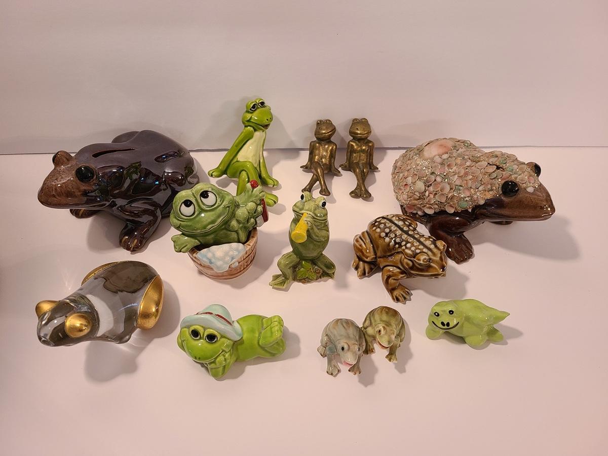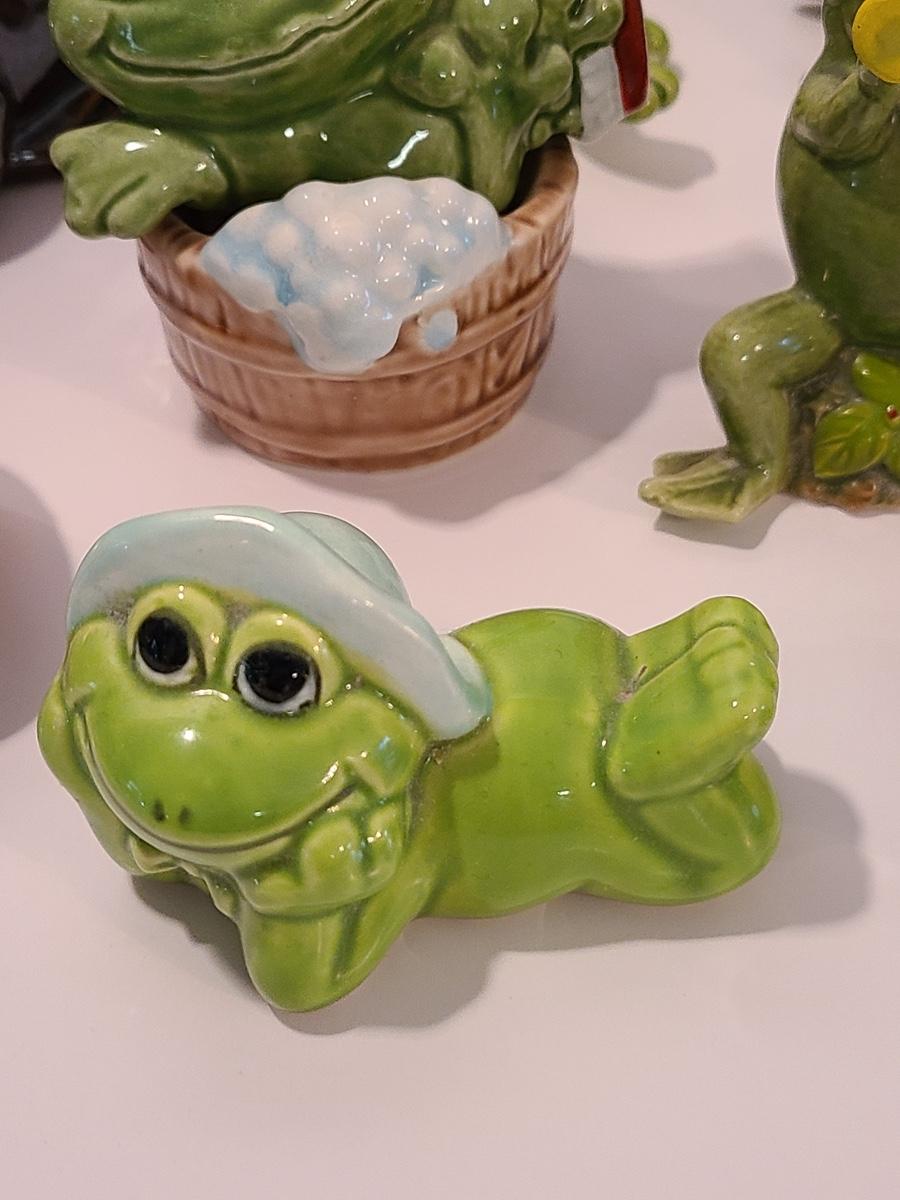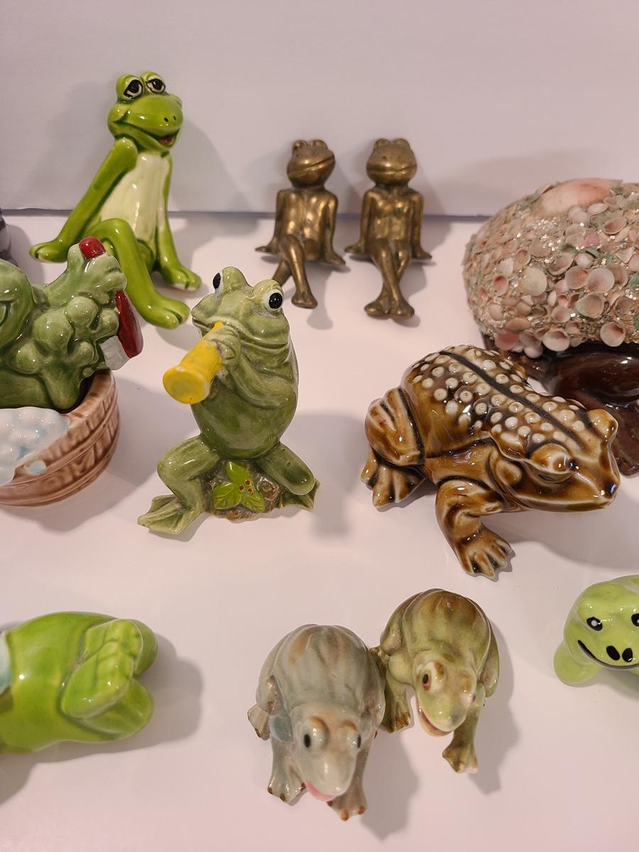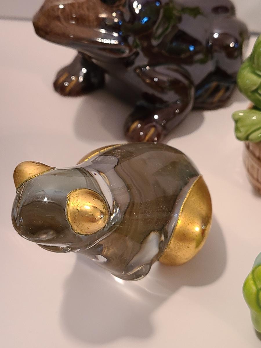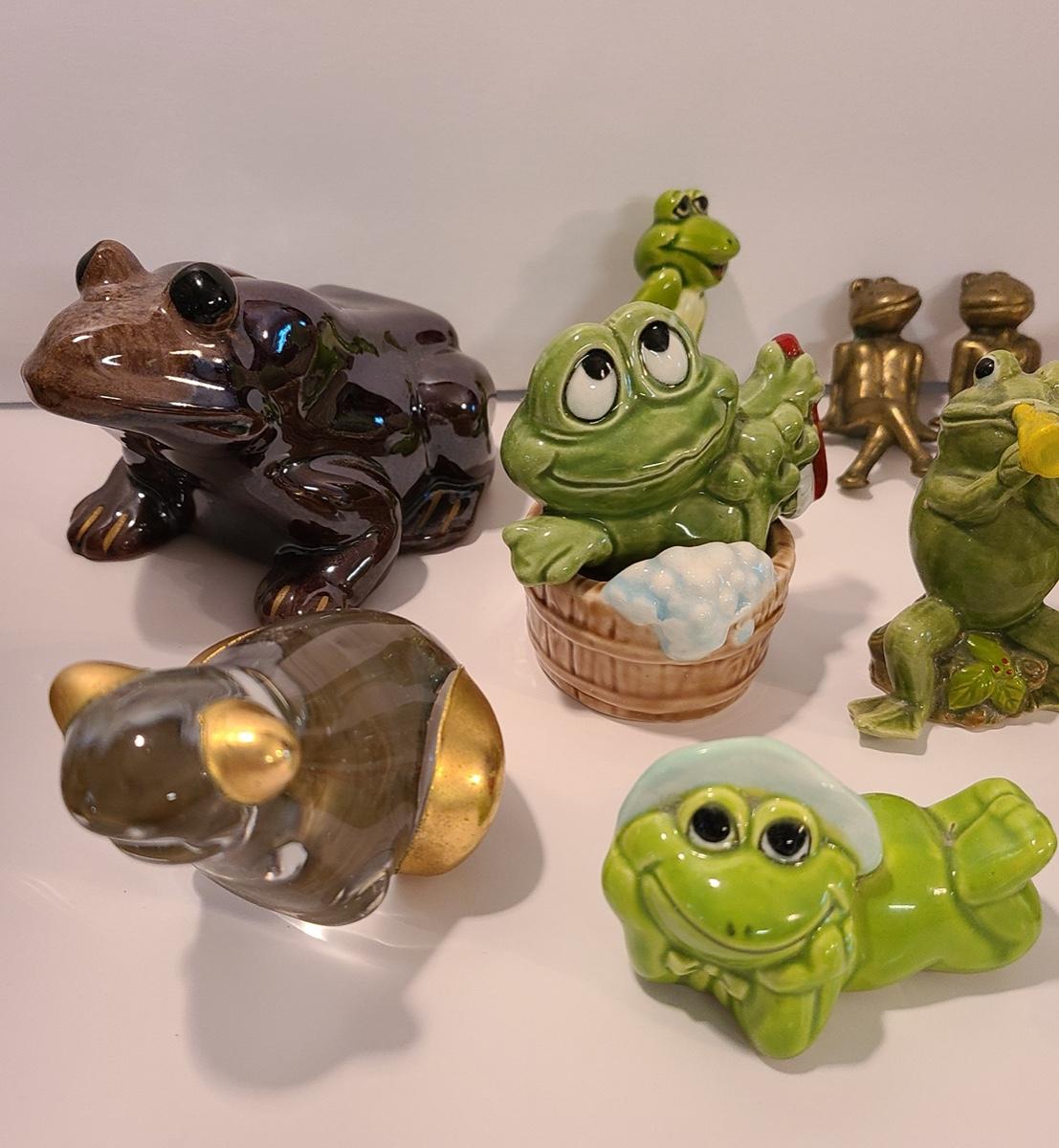 Lot 5: Frog Collectibles: Glass Paperweight, Salt & Peppers and More