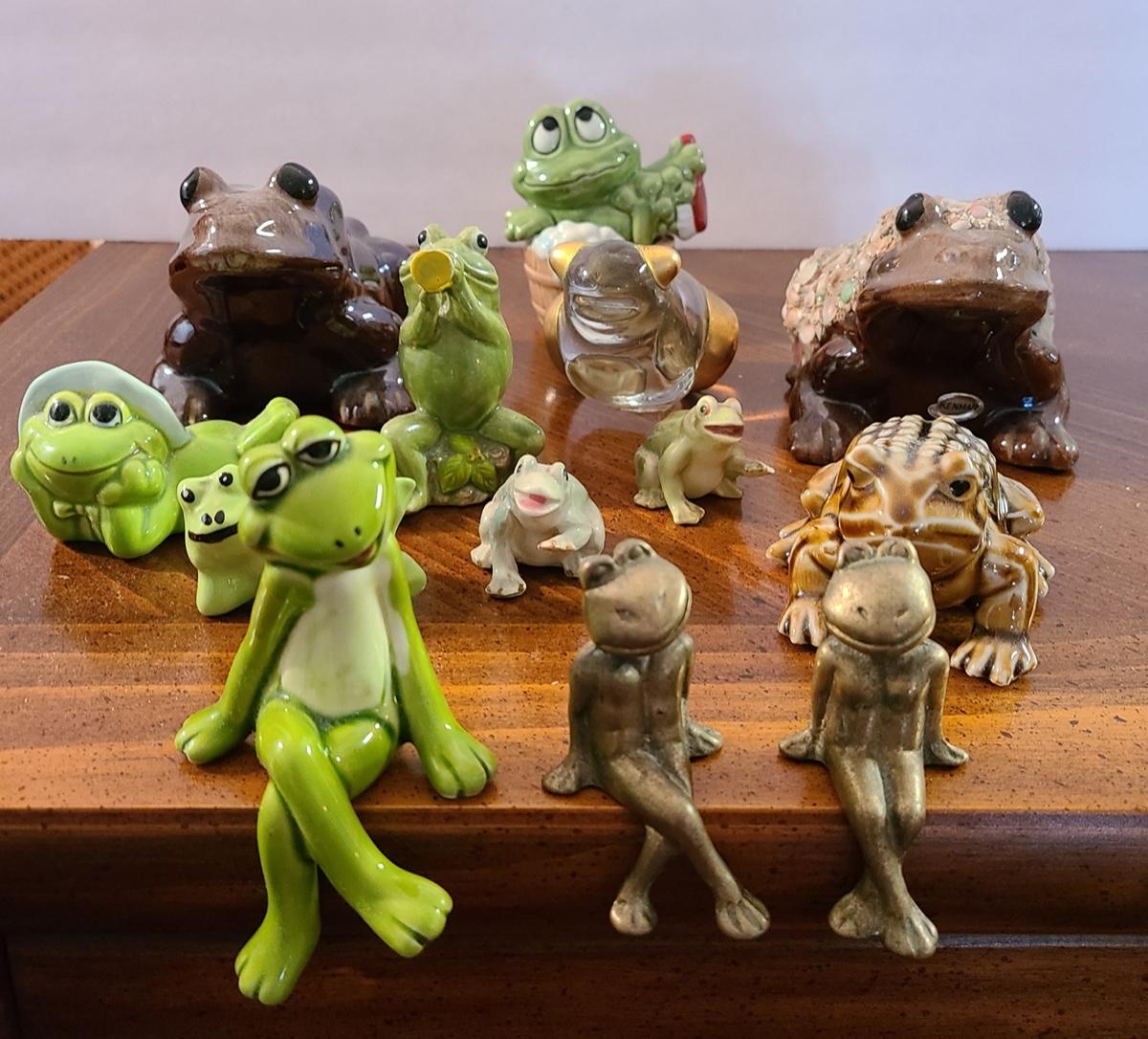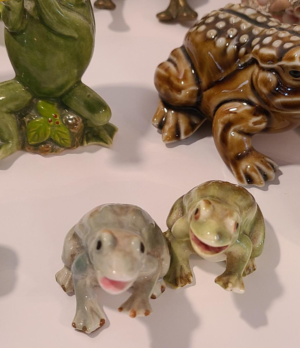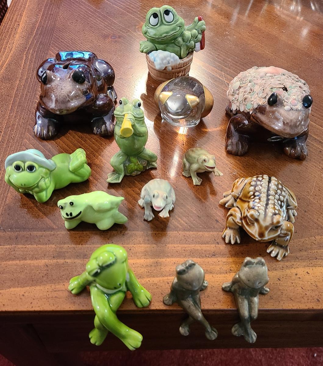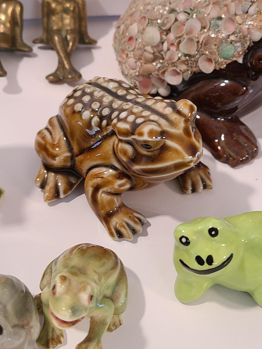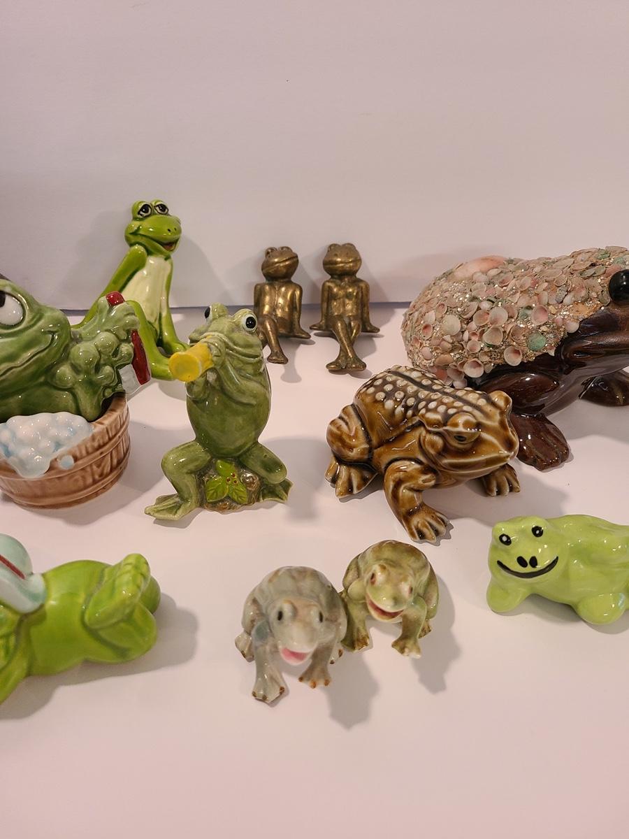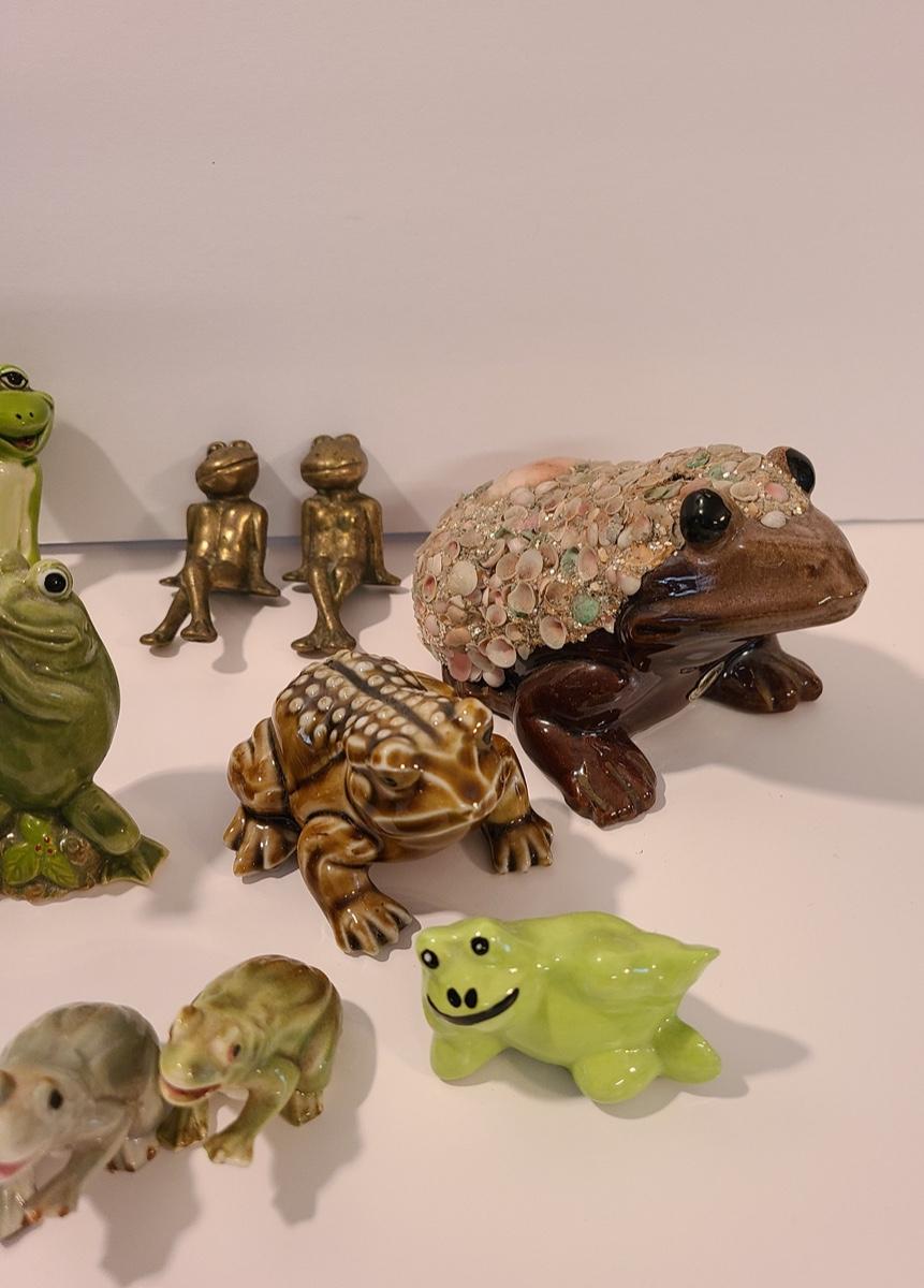 Lot 5: Frog Collectibles: Glass Paperweight, Salt & Peppers and More