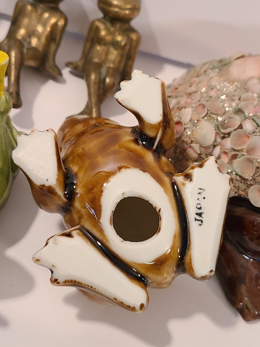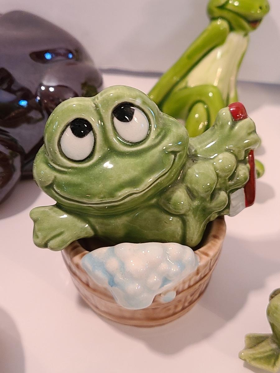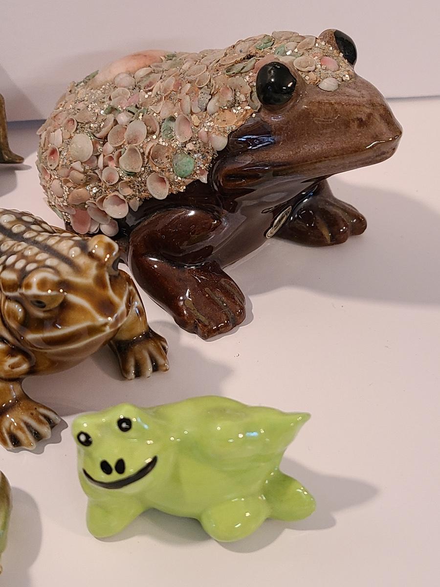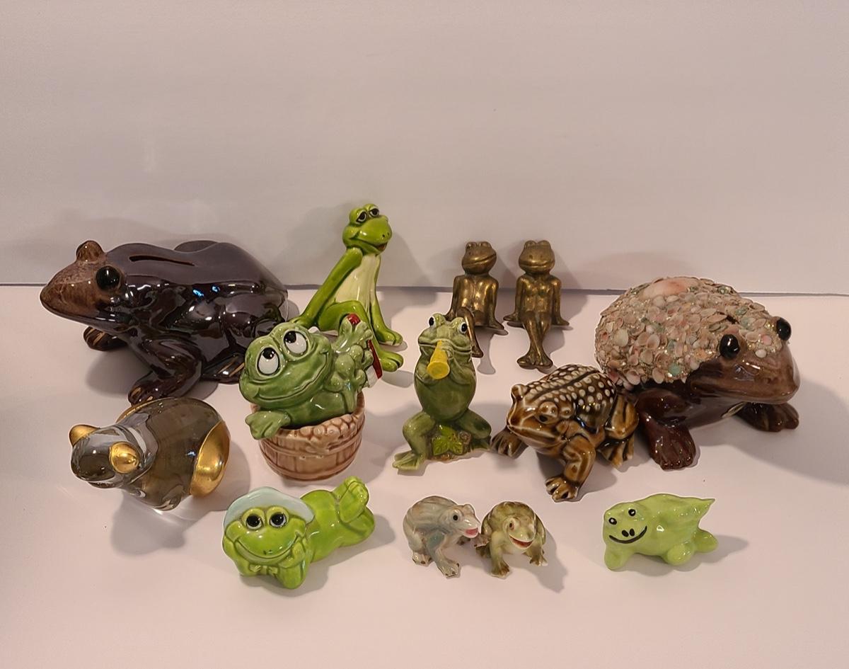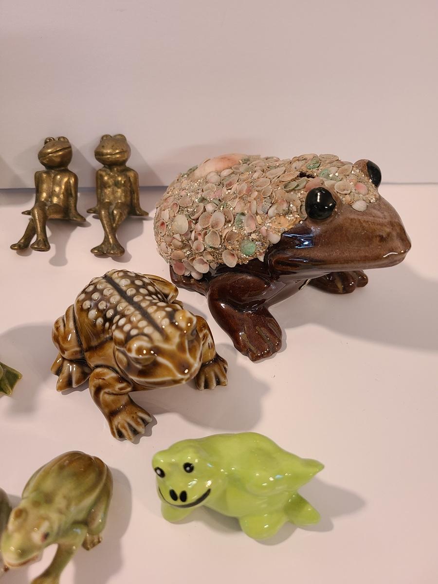 Lot 5: Frog Collectibles: Glass Paperweight, Salt & Peppers and More