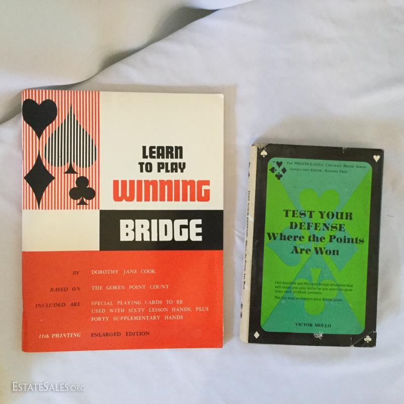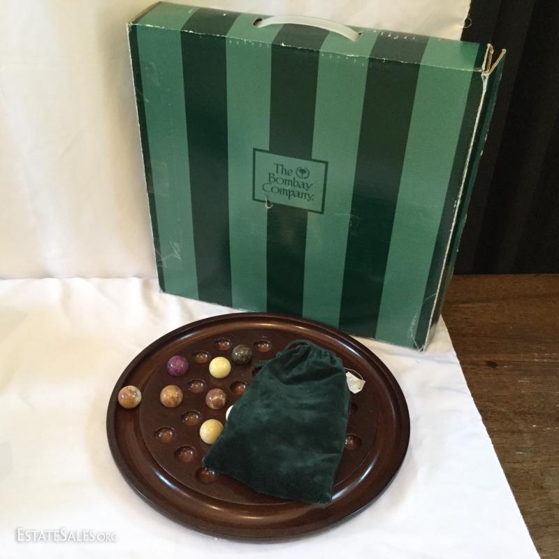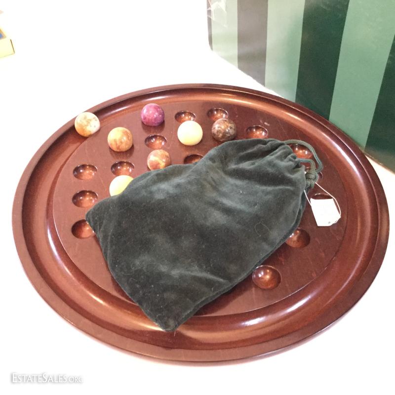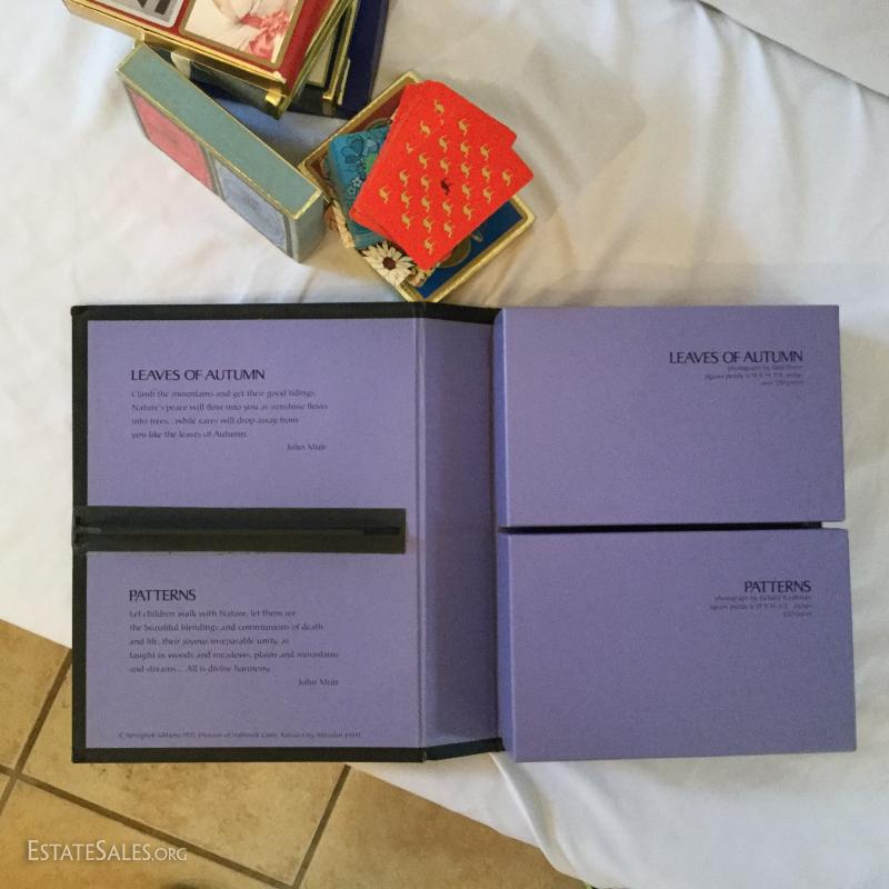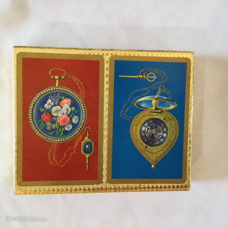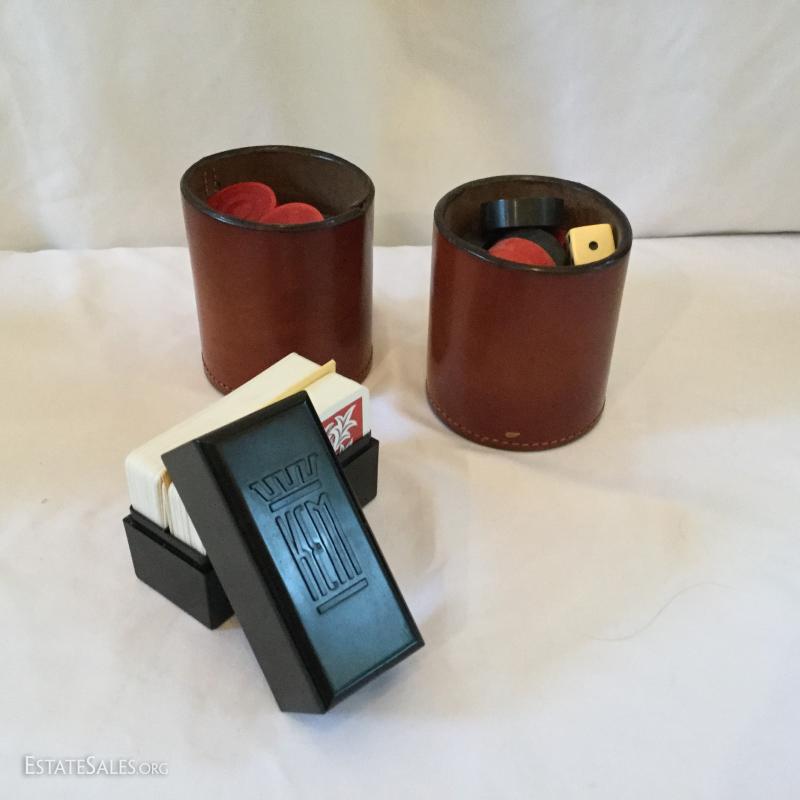 Standard sized card table with chess/checker board on one side and backgammon on the flip side. Legs fold for easy storage. Game Pieces and die for table included. 30.5"l x 30.5"w x 27.5"h Lot also includes sets of Congress and Crown playing cards in cases, puzzles, bridge score pad and wood marble game from Bombay Co. We have not counted all cards to decks or pieces to puzzles. This lot is available for local pick up in Flat Rock, NC only.