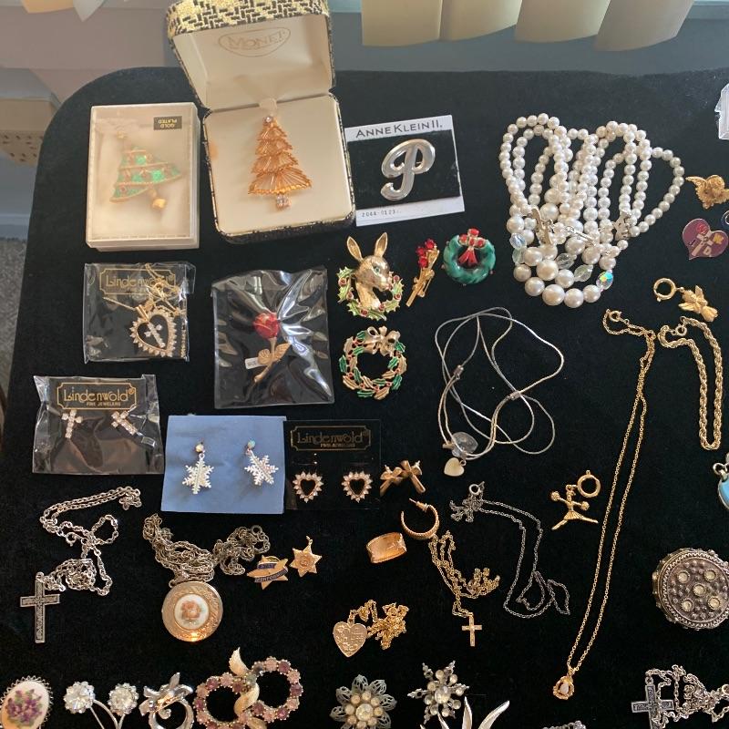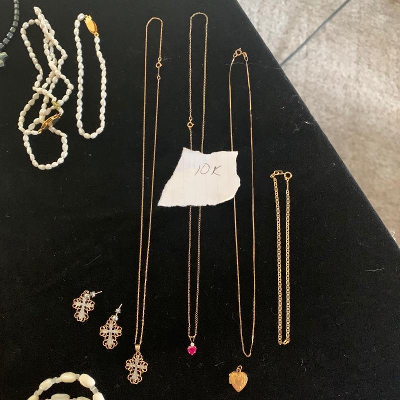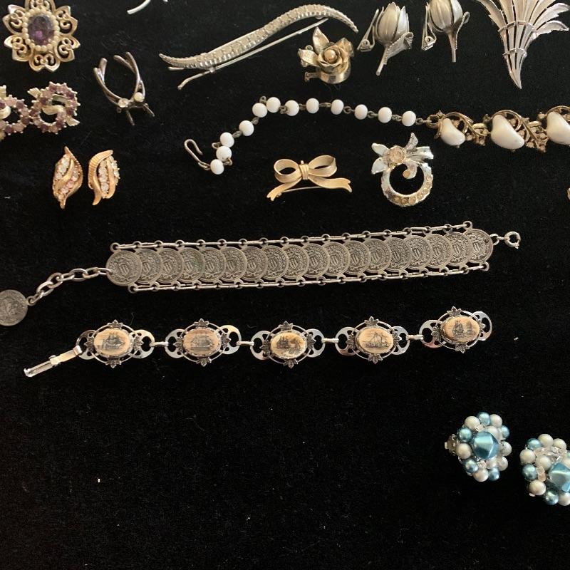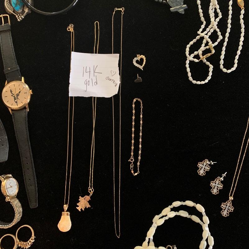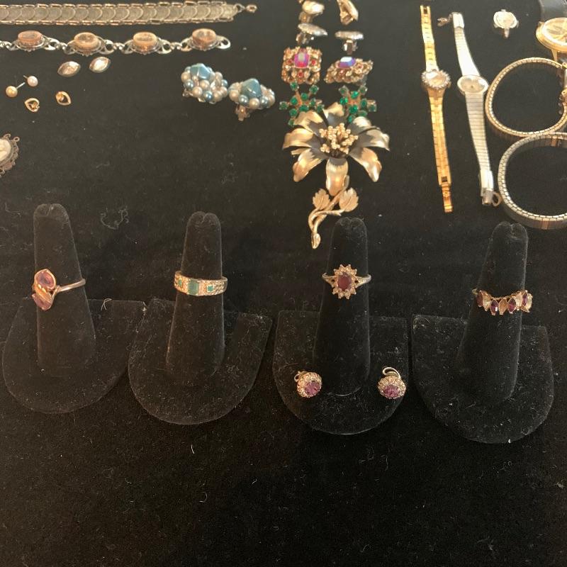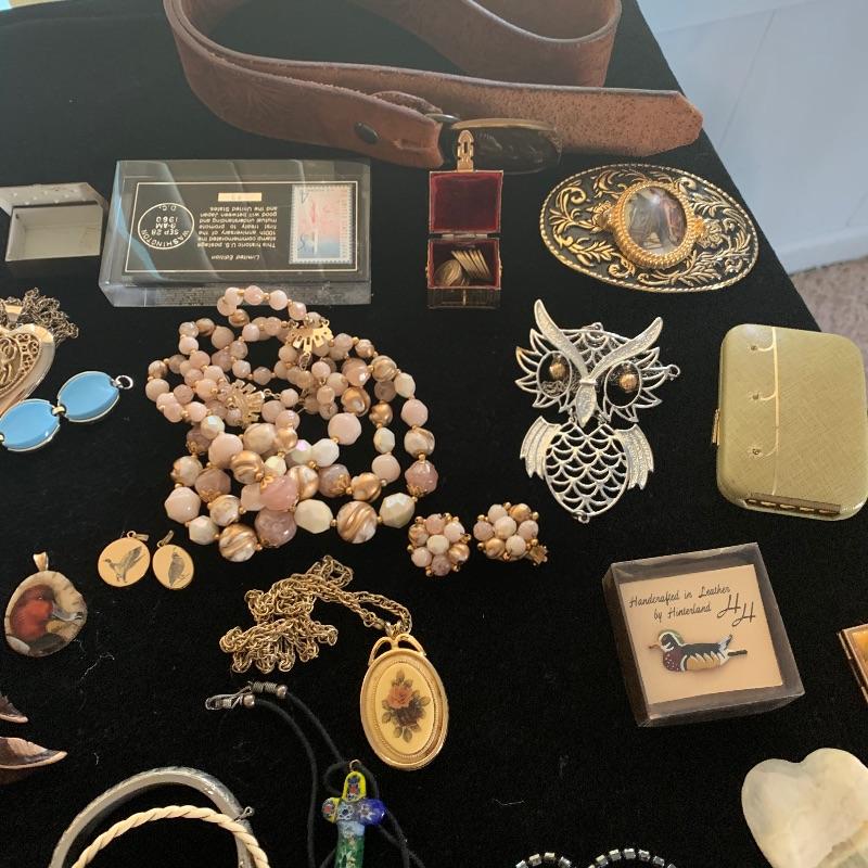 14k chains, 10k chains, 14k diamond heart pendant, cameos, vintage clip earrings and sparkle pins, couple turquoise pieces, ladies watches to include timex, Kelton, citizen quartz, and more. Costume jewelry, 1989 s Eagle Coin and fun trinket boxes as well as one faux fur coat and one vintage mink collared coat and a few purses finish out this lovely ladies lot.