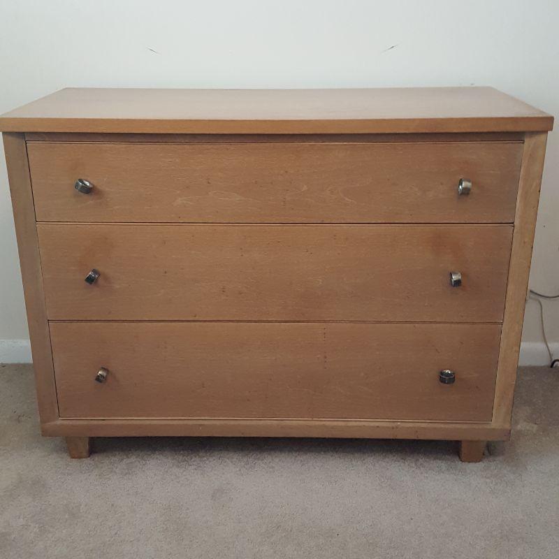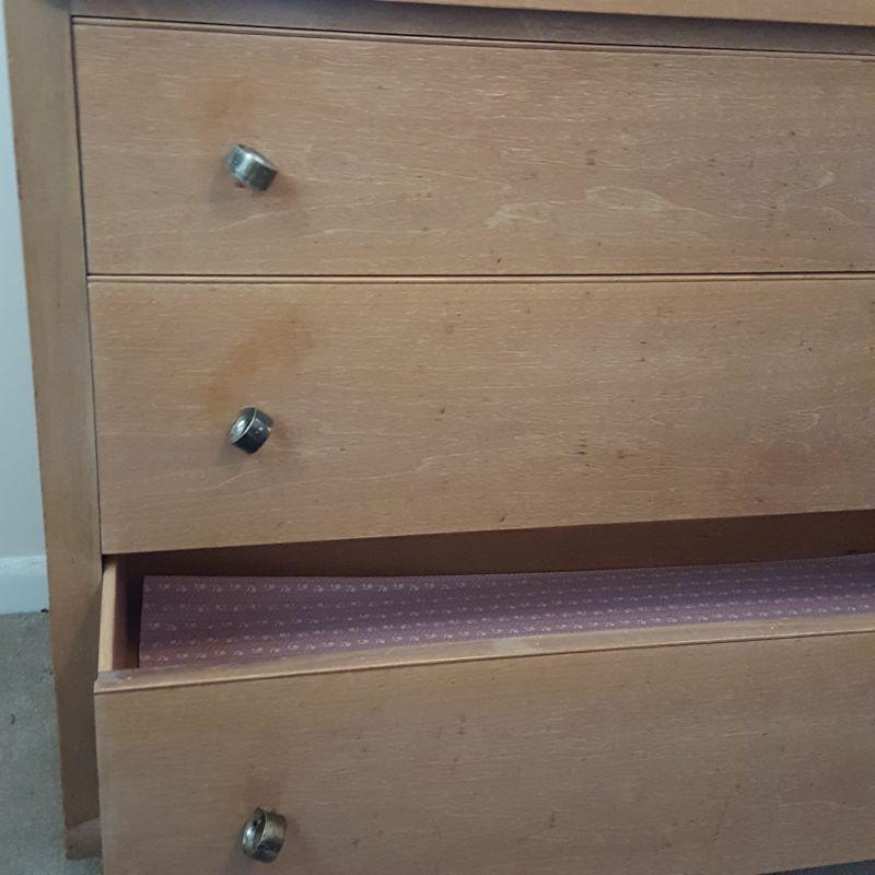 This sleek looking dresser would be an asset to your décor! This series is called The Captor. The dresser has a larger bottom drawer and the same sized other drawers, perfect for all your folded clothes. The dresser has some wear on the top, as seen in the pictures. The dresser measures 44x20x33. Reference lot 7 for other matching pieces. Local pick up only.