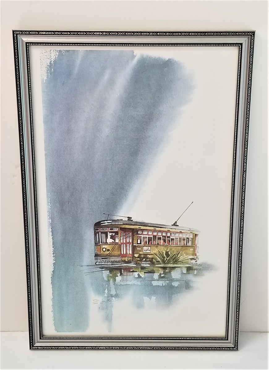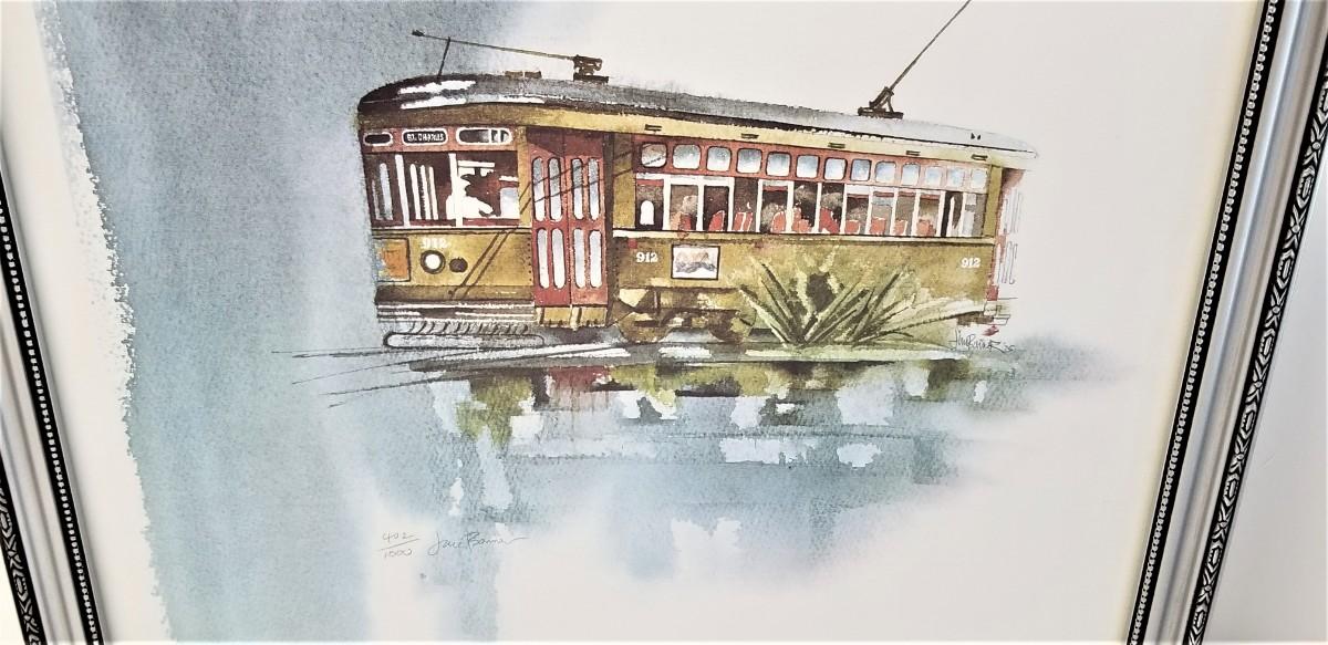 Nice framed signed/numbered (402/1000) - signed Jane Bonner - print of a New Orleans streetcar. Measures 14" x 21". Good condition.