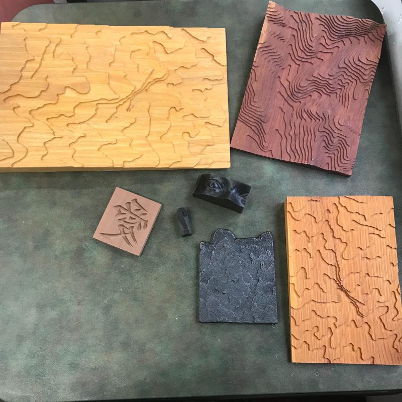 Different mold designs made from wood, wax metal and more. Largest piece measures 17” x11” x1”. Lot is available for shipping or local pick up in Asheville, NC only.
