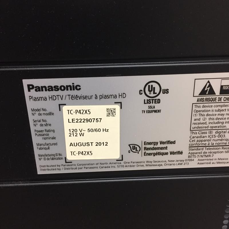 Panasonic 42” Viera flat screen TV with Remote. Model TC-P42X5. Add this Panasonic TV to that extra bedroom in your home or upgrade your own.