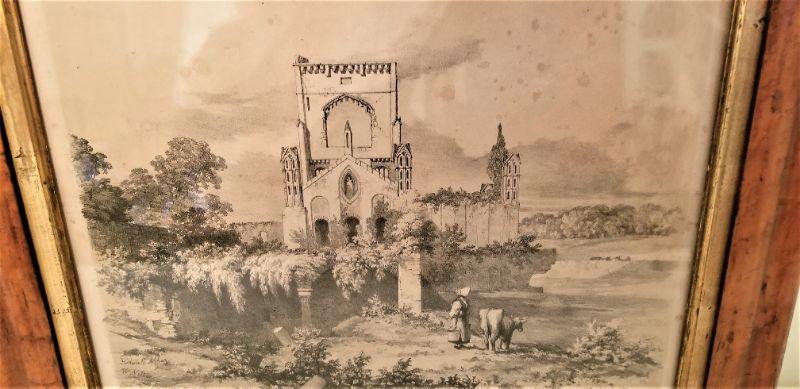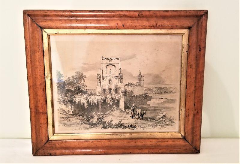 Lot #5  Period Engraving in antique maple frame - "Kirkstall Abbey"