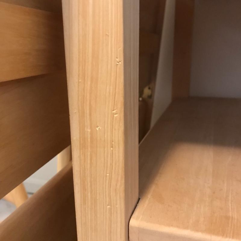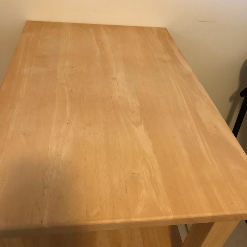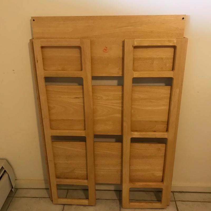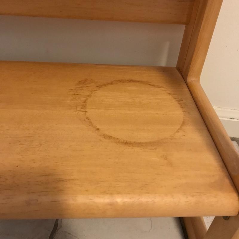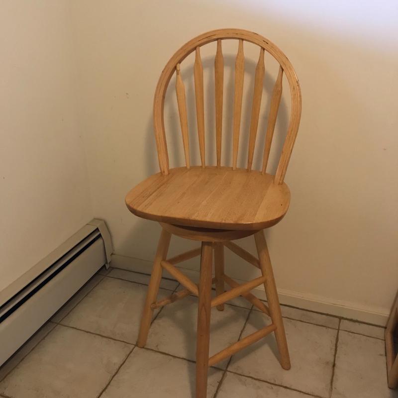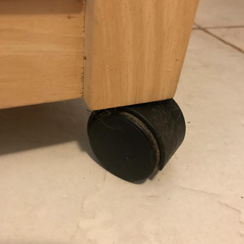 Three durable pieces all similarly colored. A rolling cart that glides smoothly looks great and measures approx. 25.75” x 17” x 30”. Lot also includes a sturdy book shelf that folds in for easy storage and a swivel chair. The swivel chair is missing one foot rest and there is another foot rest that appears to have been chewed on. Some wear is noted in photos. Local pick up only.