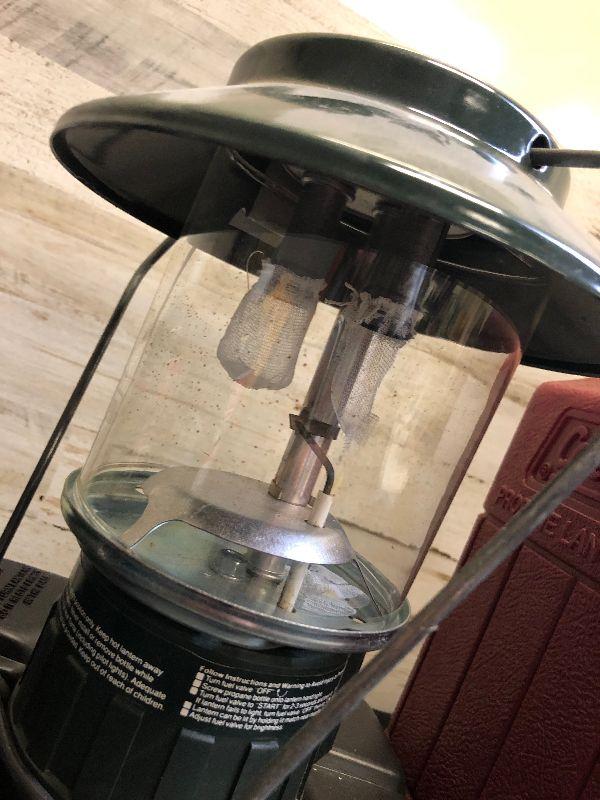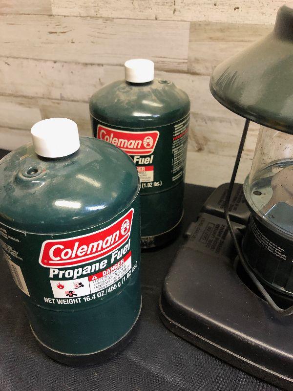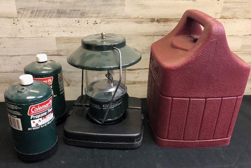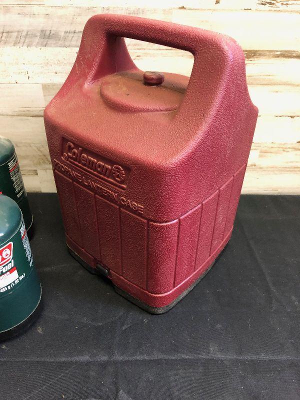 Lot 5 Propane lanterns with tanks and hard case cover