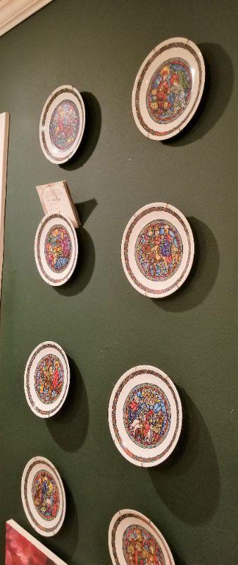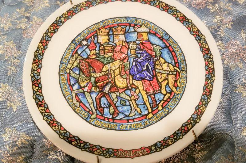 Nice set of limited edition plates depicting the story of the Nativity of Christ and the Flight into Egypt. No boxes. Each comes with plate hanger. We have the paperwork. Each plate measures 8.5" wide. Colorful stained glass effect. Price is for the set.
