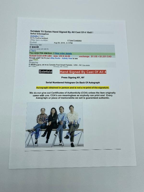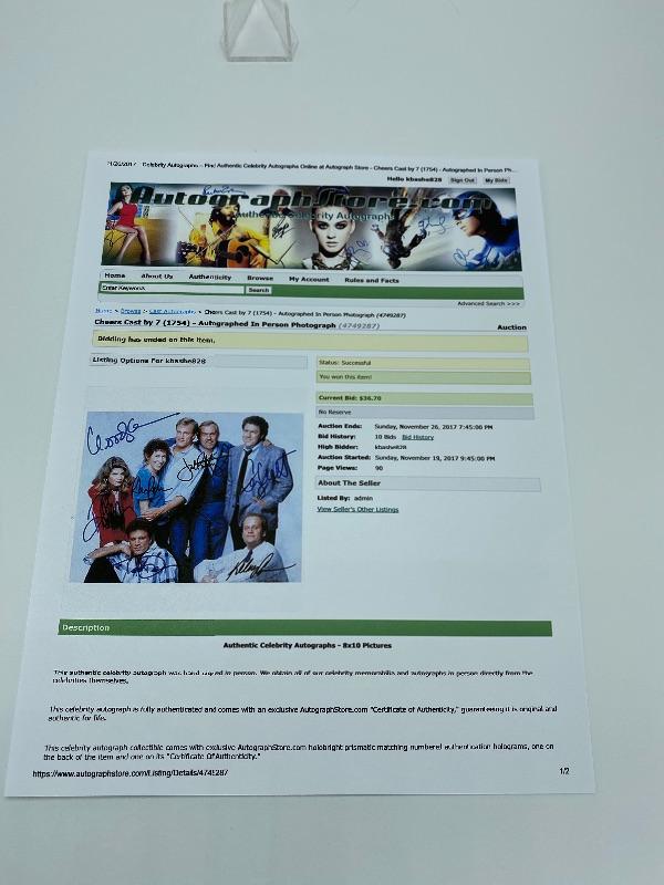 These classics will forever be loved. Autographed cast photos of Seinfeld, Friends, Cheers, Will & Grace and Married with Children. We added the late 90s hit Charmed that is signed by Holly Marie Combs. Not all cast members signed every photo. See pictures for details. Ted Danson Autograph on Cheers photo does not come with a COA. All other come with certificates or COA stickers.