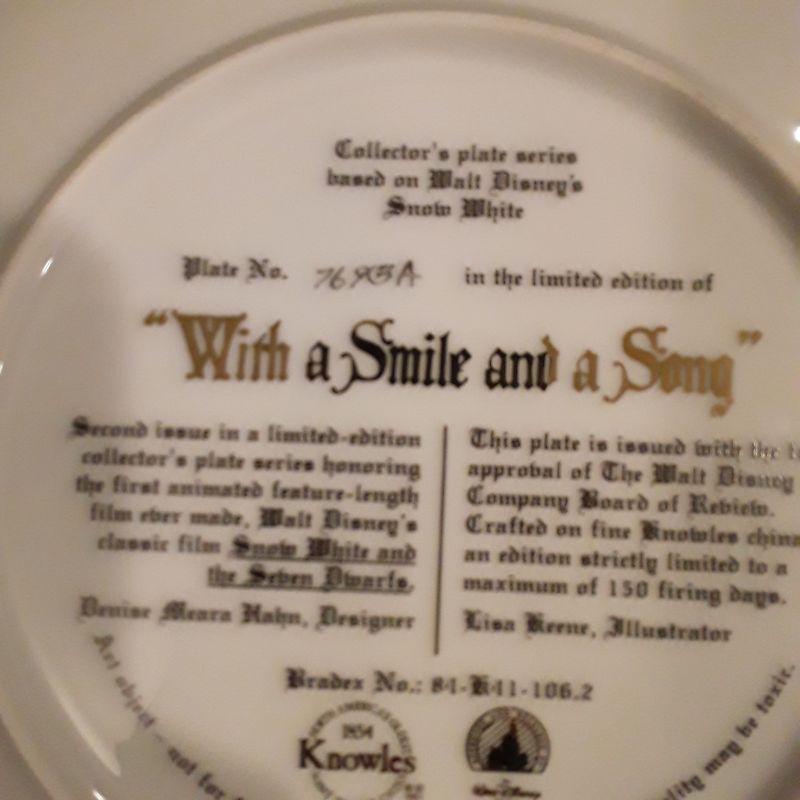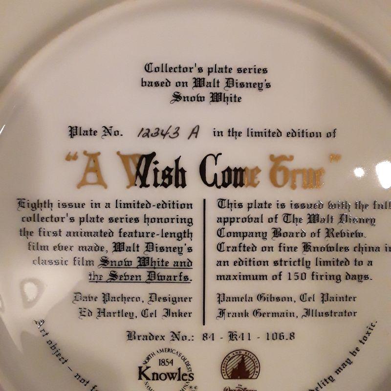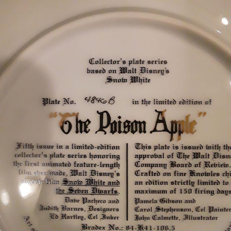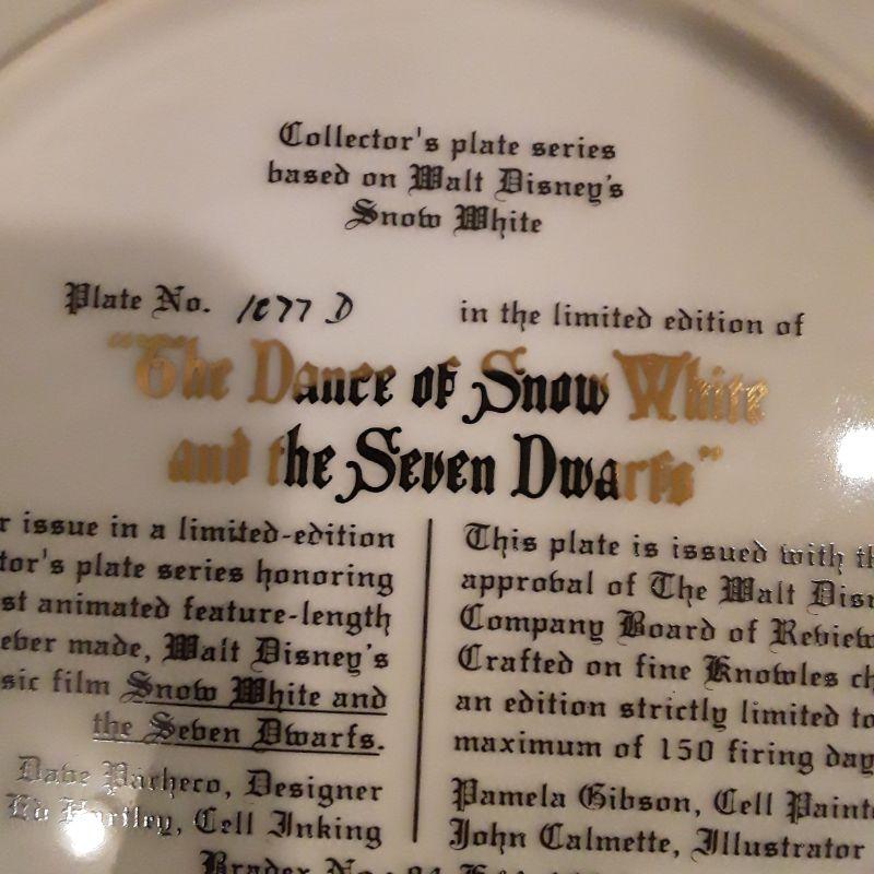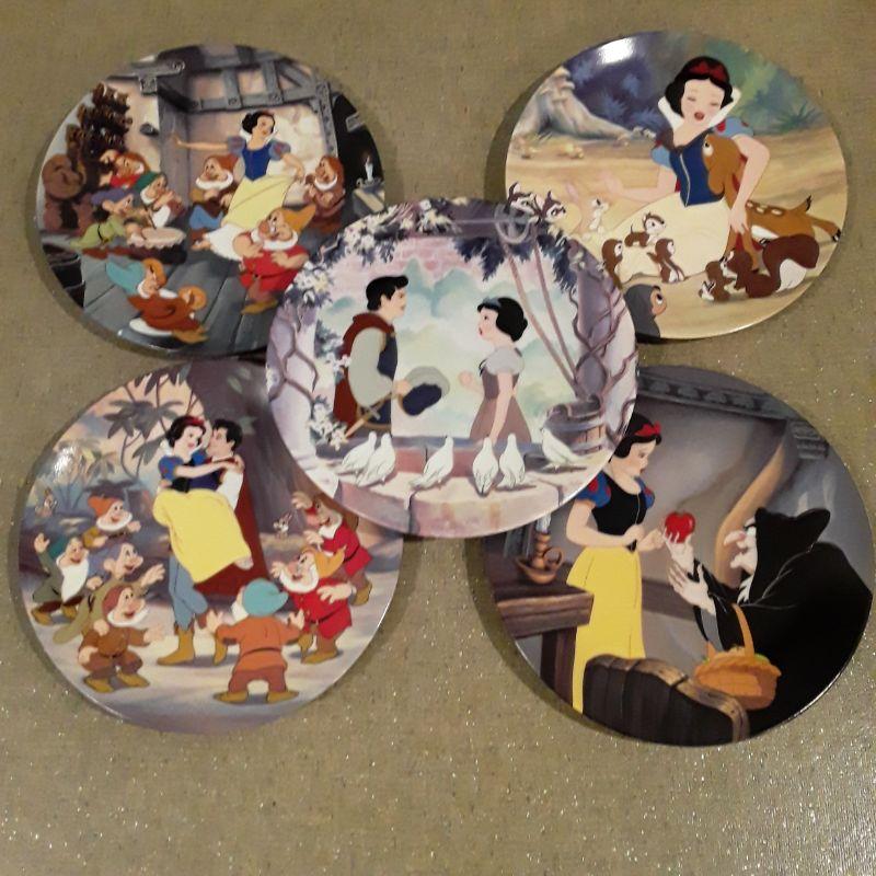 Lot 5 Snow White Collector Plates: A Wish Come True #12343A; The Poison Apple 4846B; Happy Ending #11358A; With a Smile and a Song #7693A; The Dance of Snow White and the Seven Dwarfs #1077D