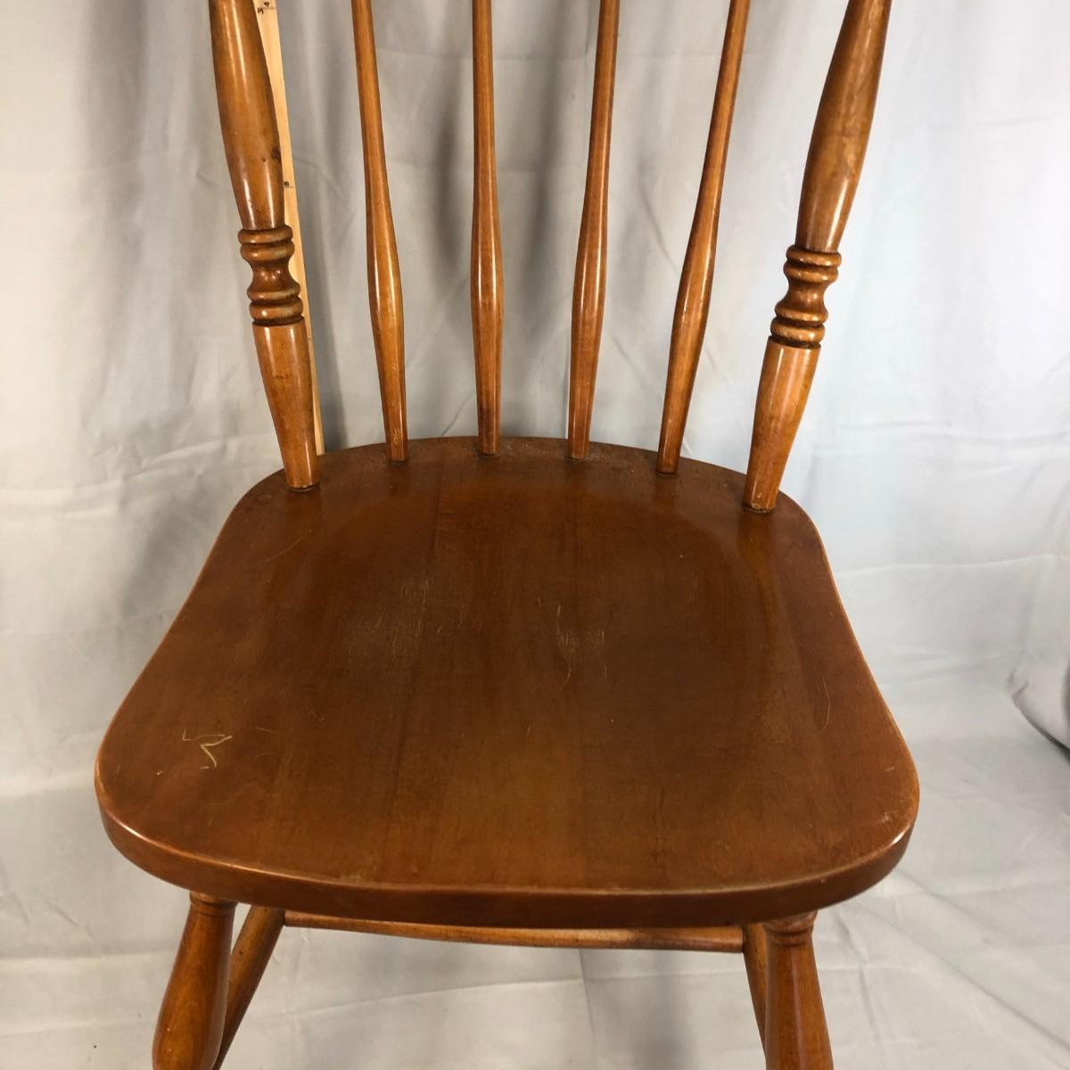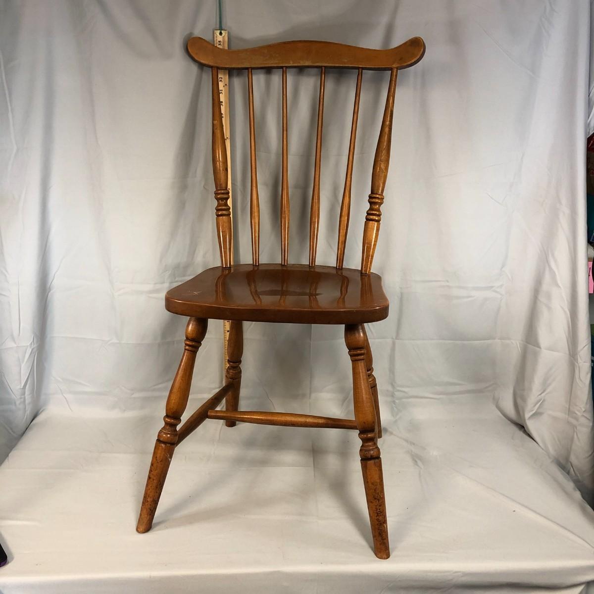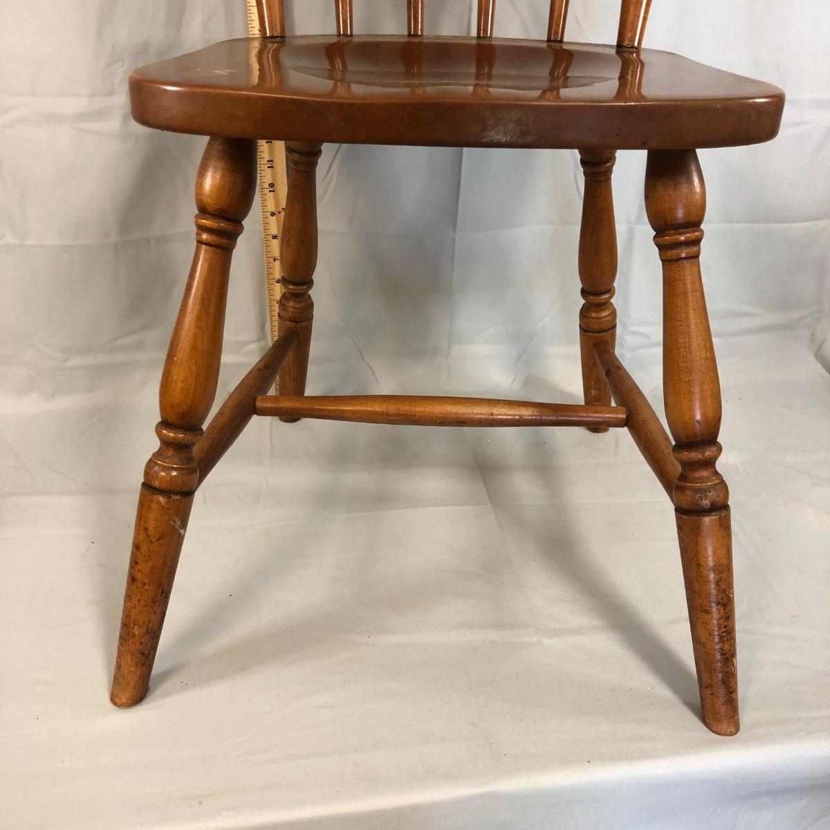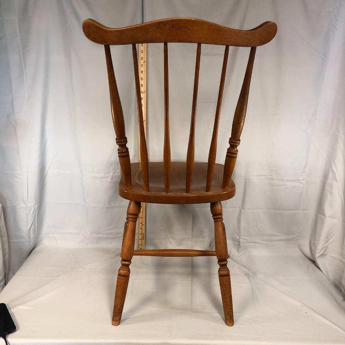 This is a solid piece - no wiggles! I think that it is made of maple and the only issue is the finish needs a little work in some places, but you could also start using it as is right now. It really is a nice chair. It is about 36" tall and the seat height is at about 17" tall.