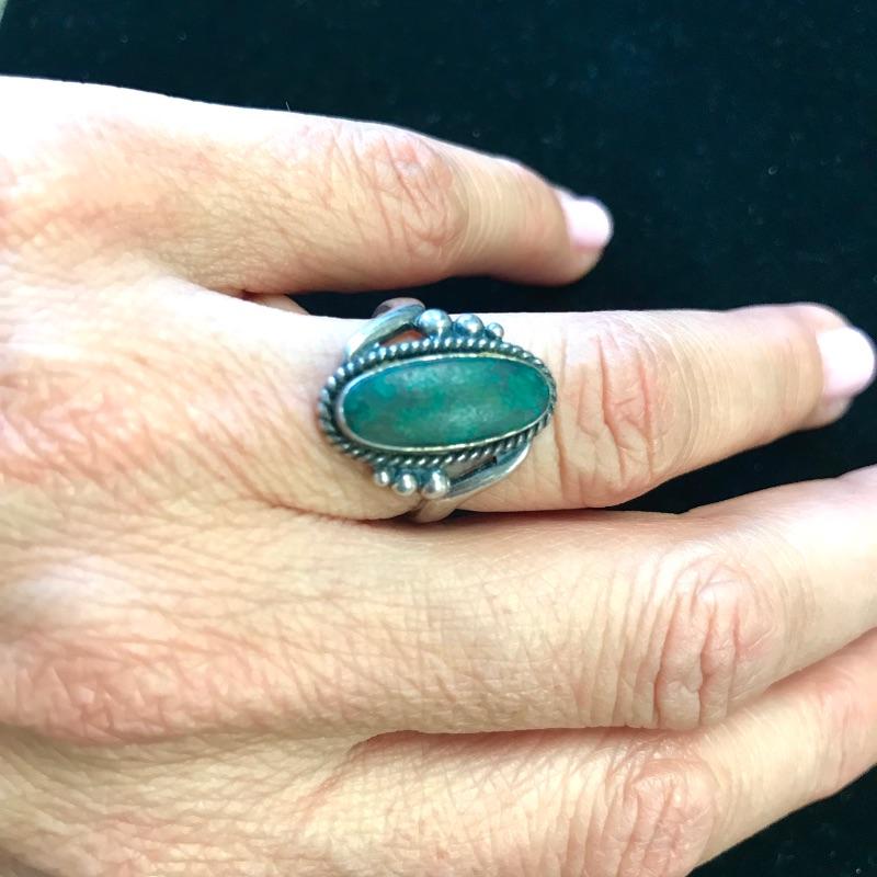 Bracelet measures 1.5” x 7.5”. See photos for ring measurements.