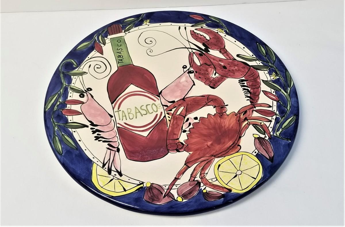 Louisiana Tabasco brand platter/cake plate - like new. Measures 12" across.
