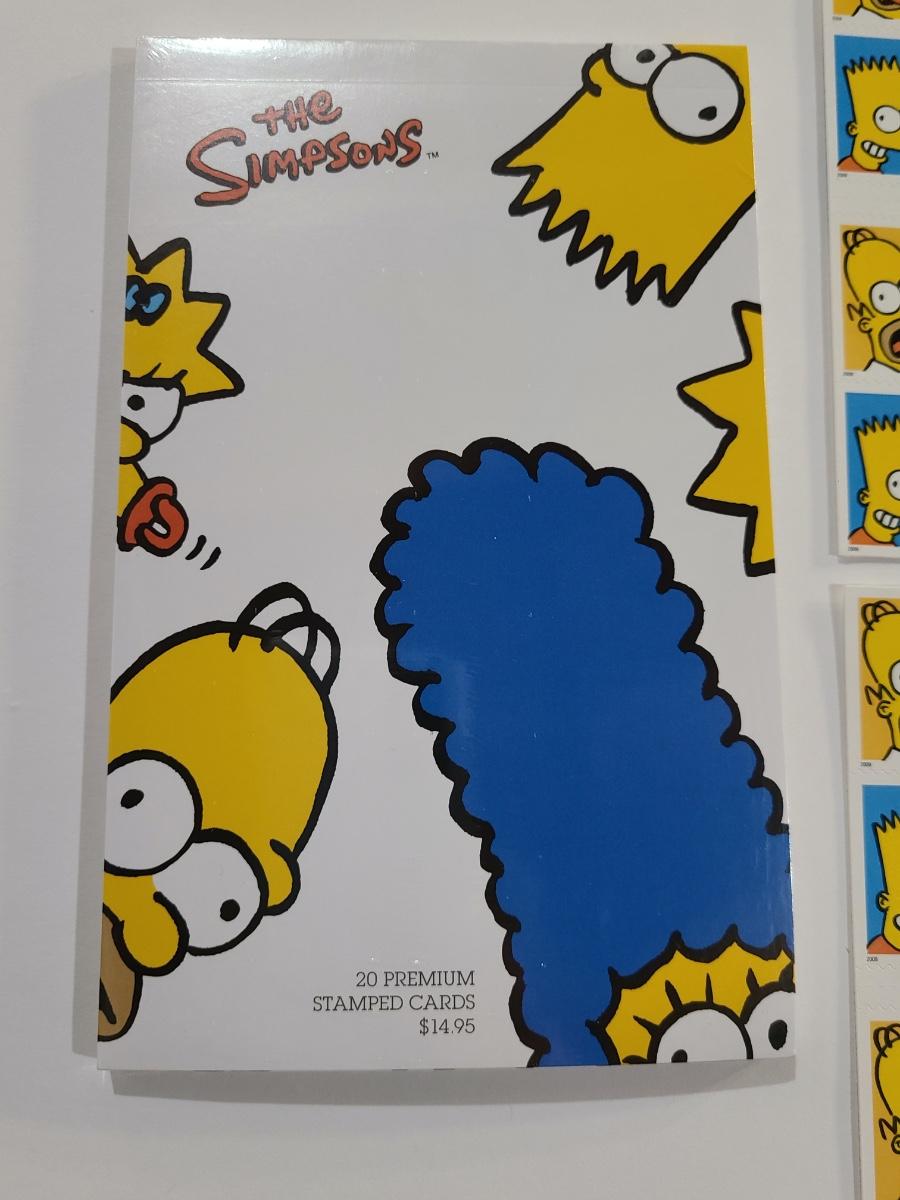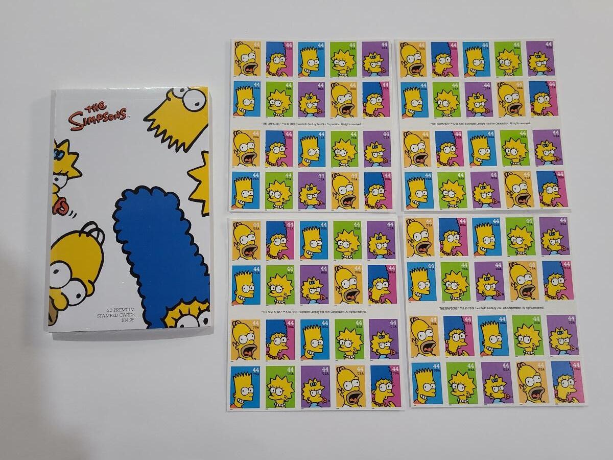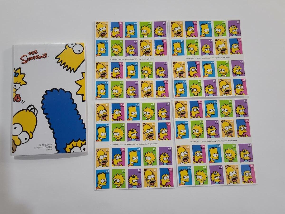 Lot 5: The Simpson's Stamp Sheets and Post Cards (80- 44 cent stamps and 20 new postcards)