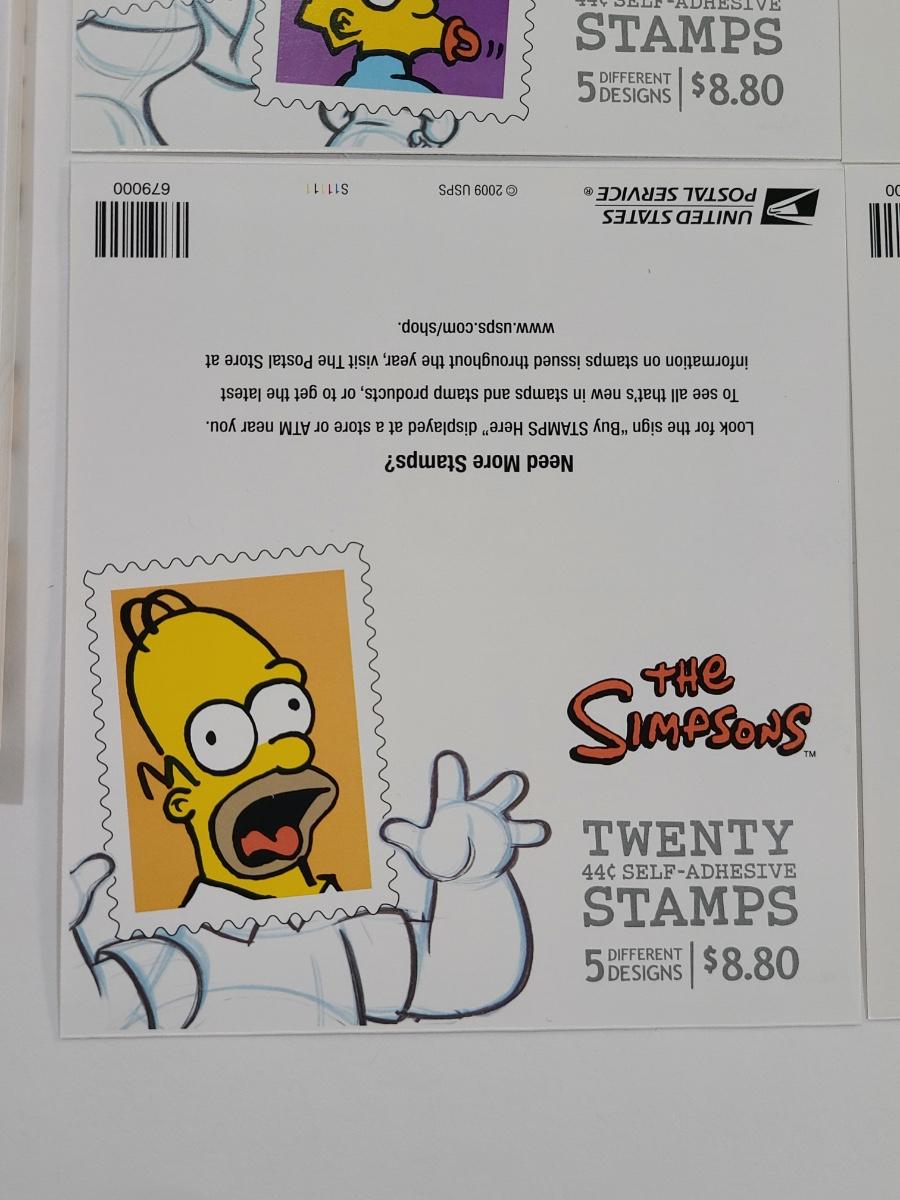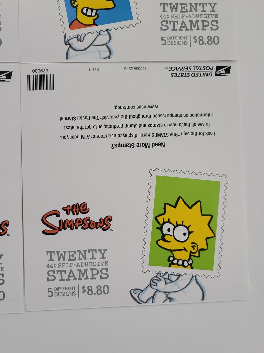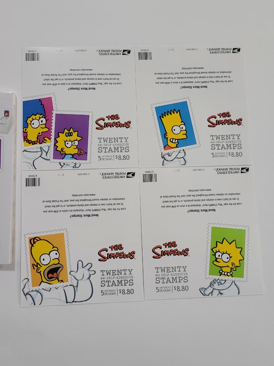 Lot 5: The Simpson's Stamp Sheets and Post Cards (80- 44 cent stamps and 20 new postcards)