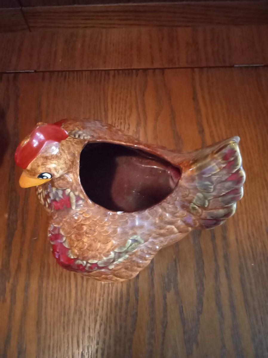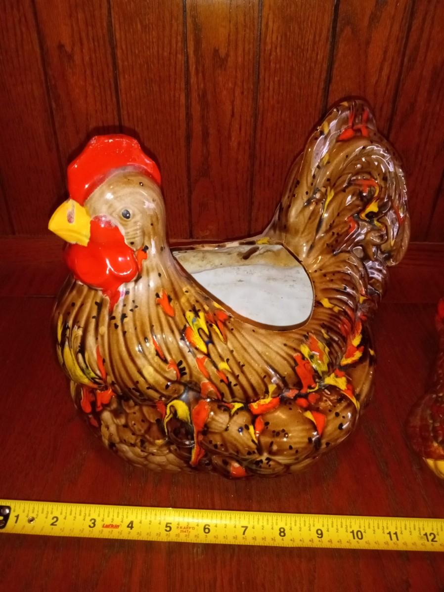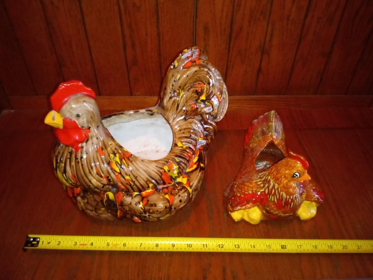 LOT 5 TWO CERAMIC HEN PLANTERS (Entry way)
