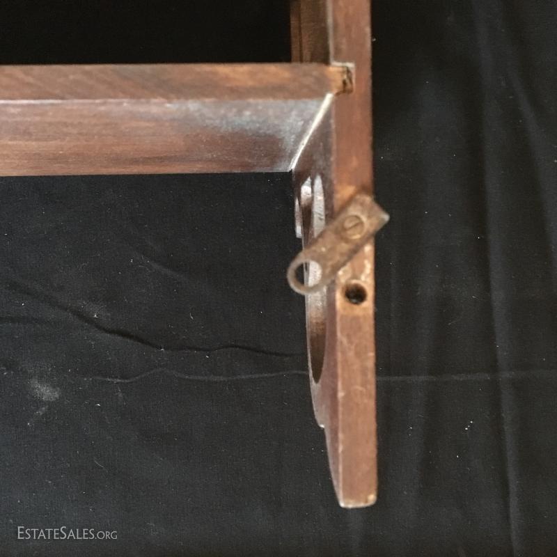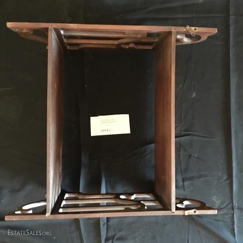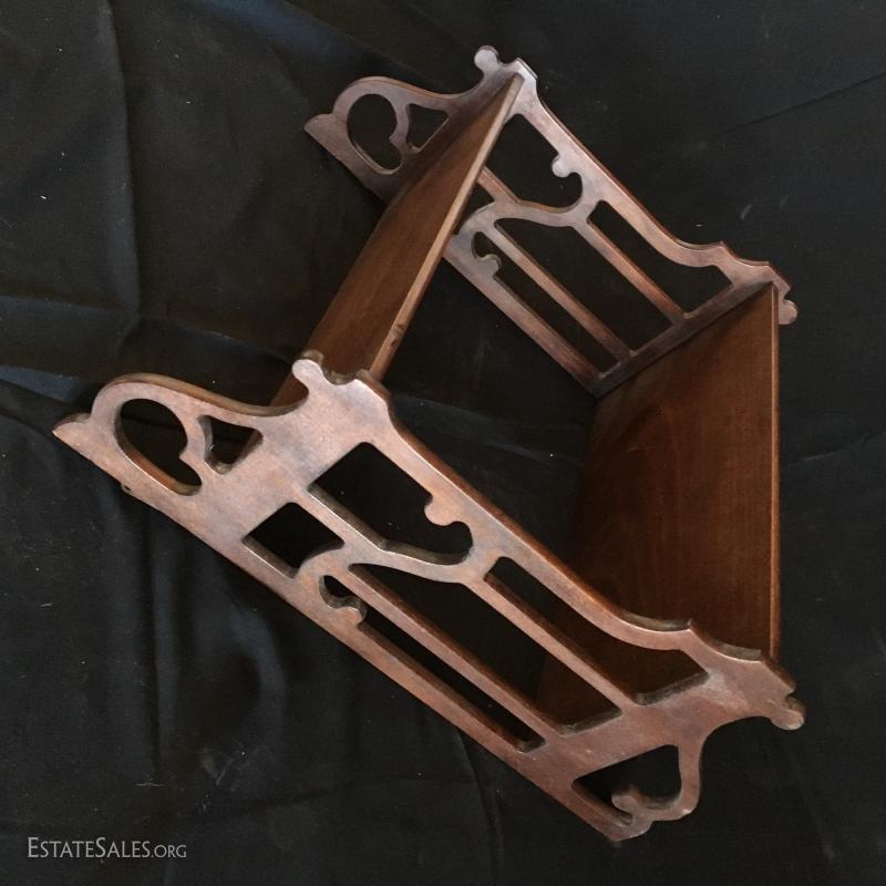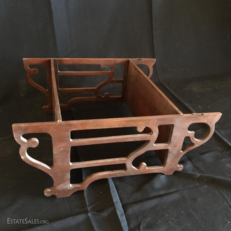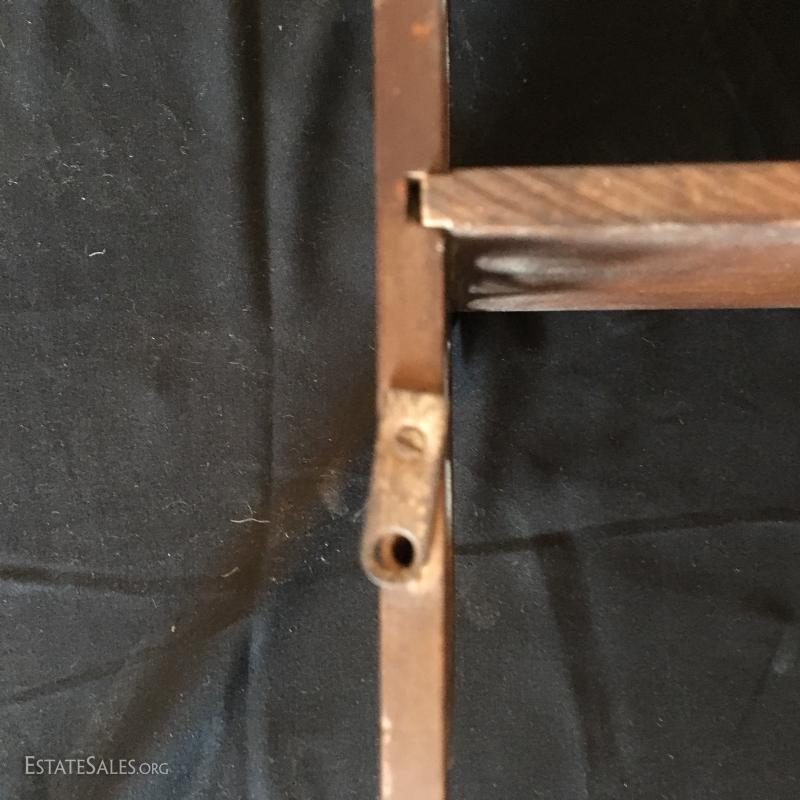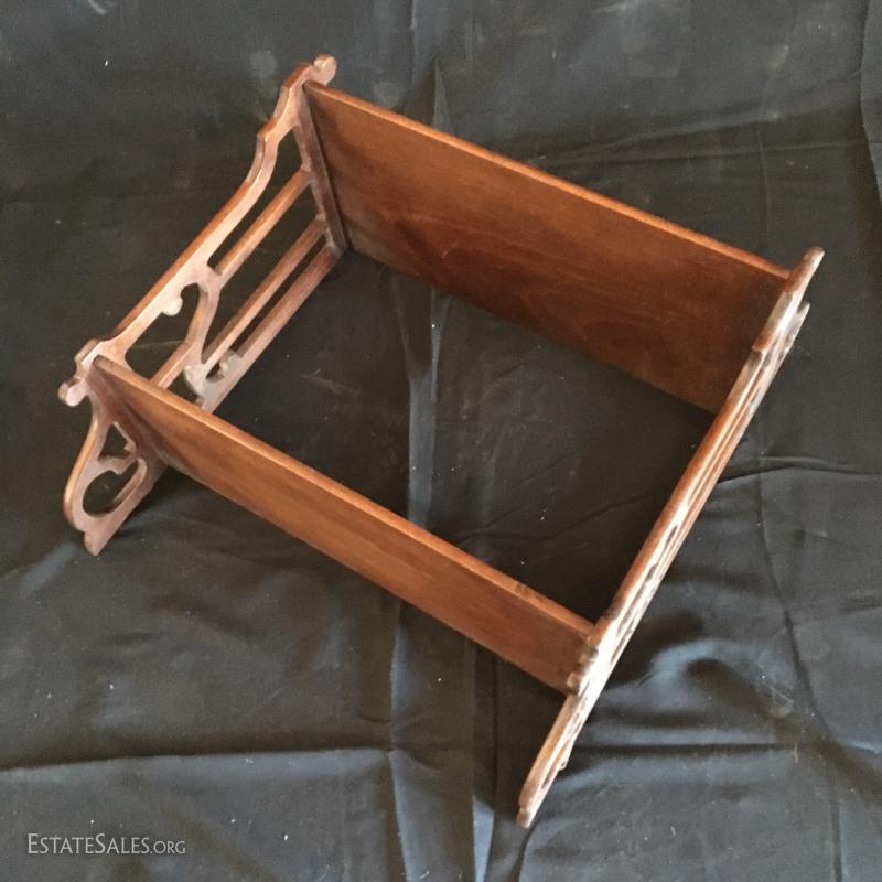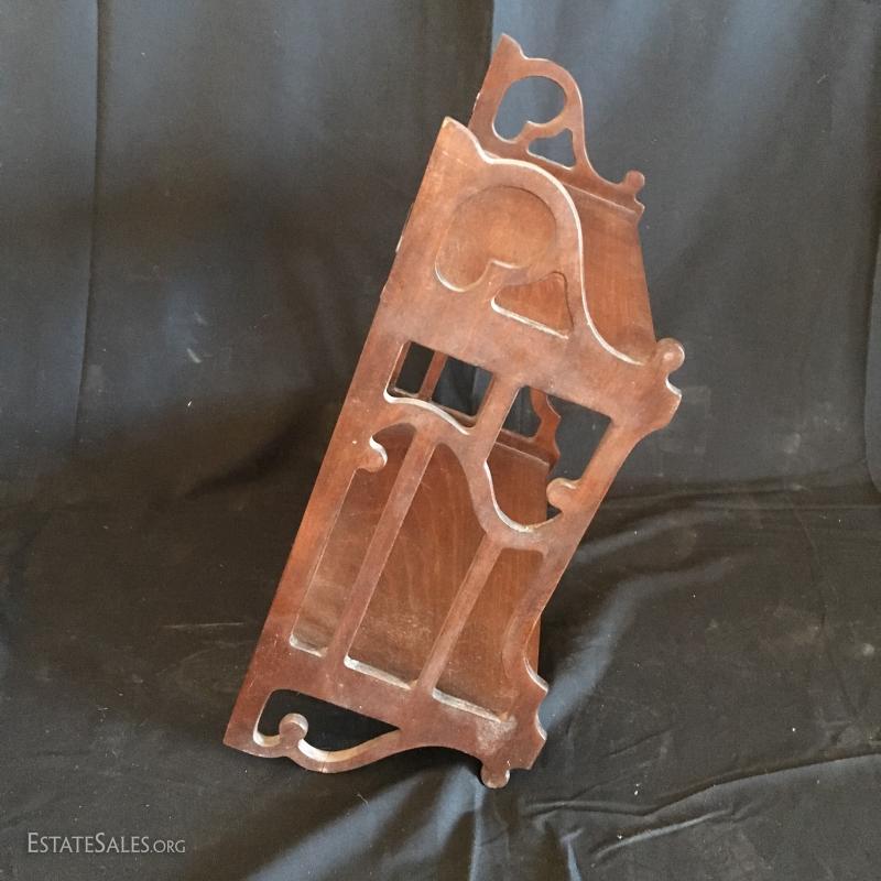 Towel/Newspaper Rack. Wood with metal detail. 27" Tall x 15" Wide, coloring looks lighter in photos. Weight limit 50lbs.