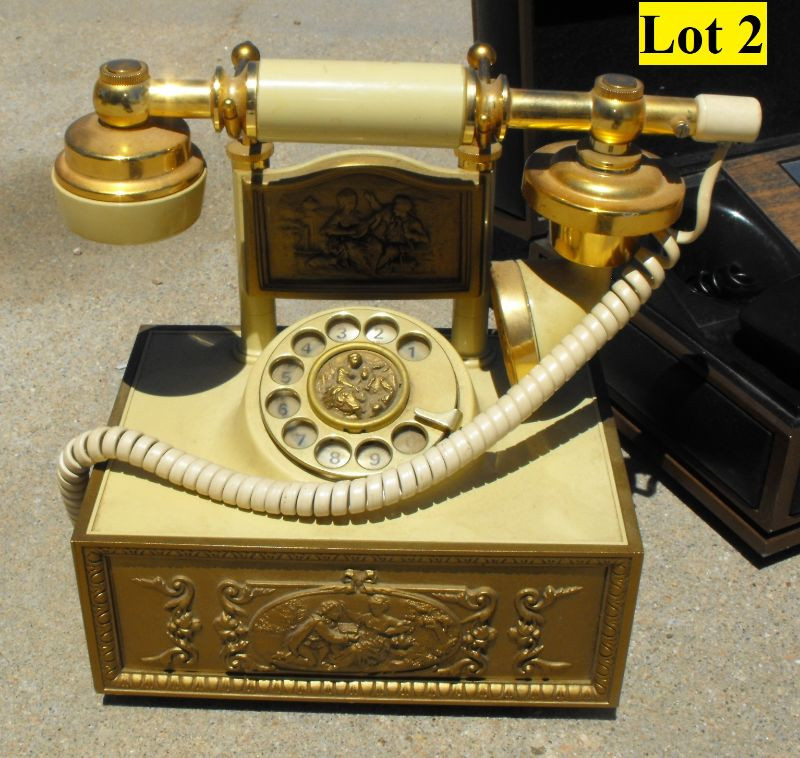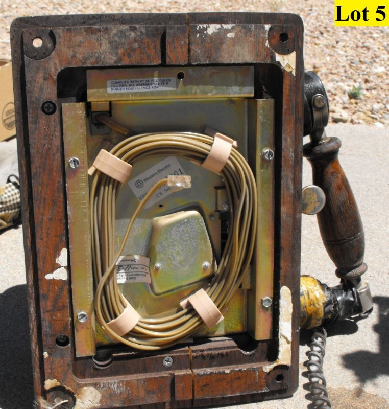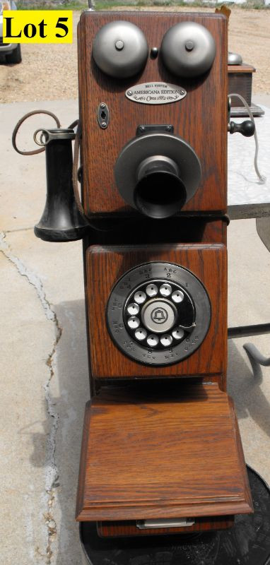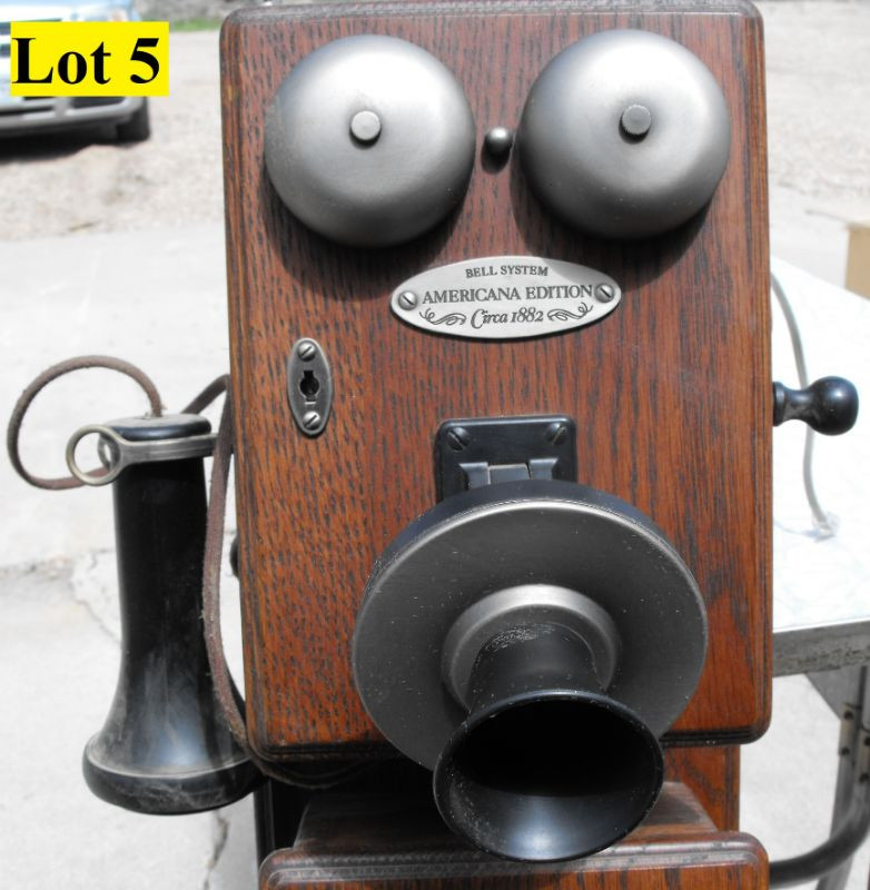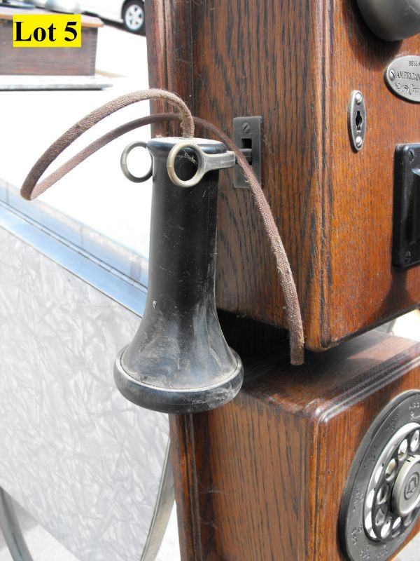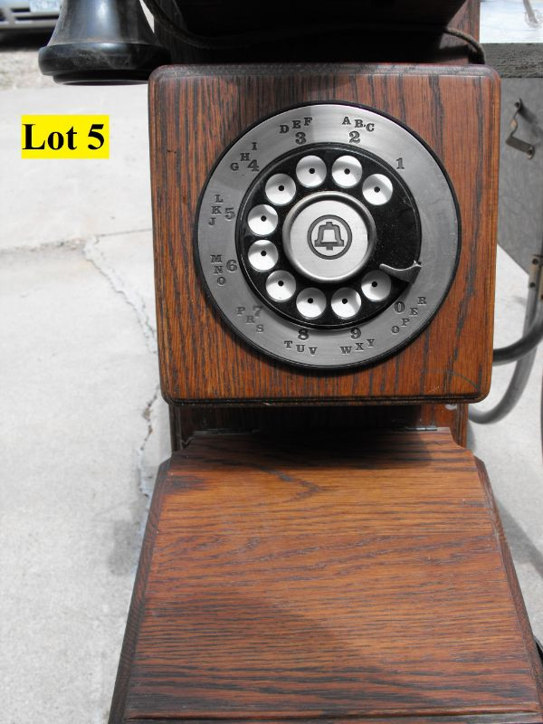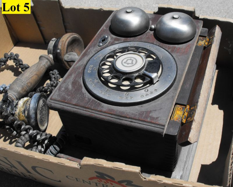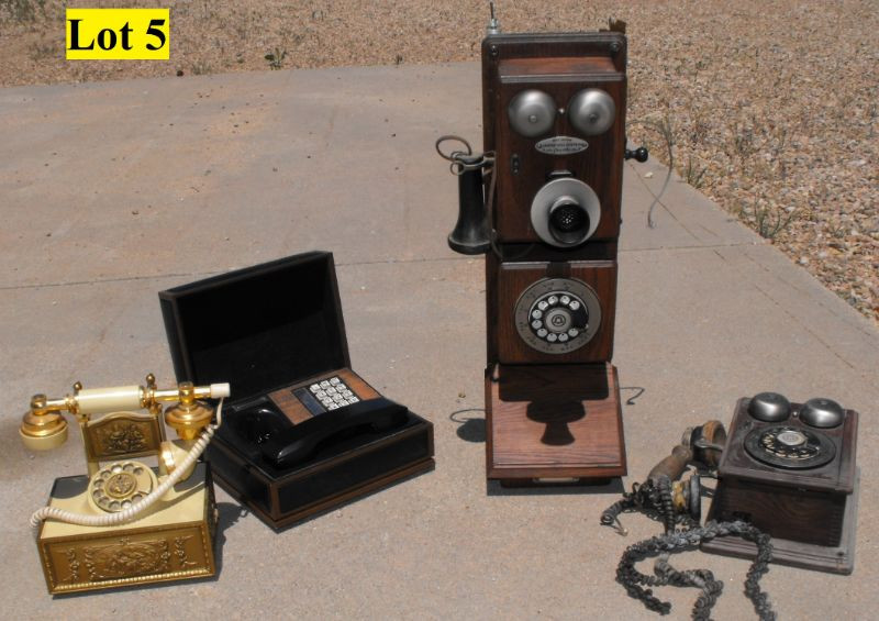 Western Electric Antique Style Wooden Wall-Mount Telephone. Measures 24" from top to bottom and in Very Good condition. Western Electric Wooden Vintage Telephone in rough condition, the back door has split from the hinges and the handset is taped. Victorian Style Phone in Good-VG Condition. Western Electric Executive Phone inside a Case. None of these phones have been tested