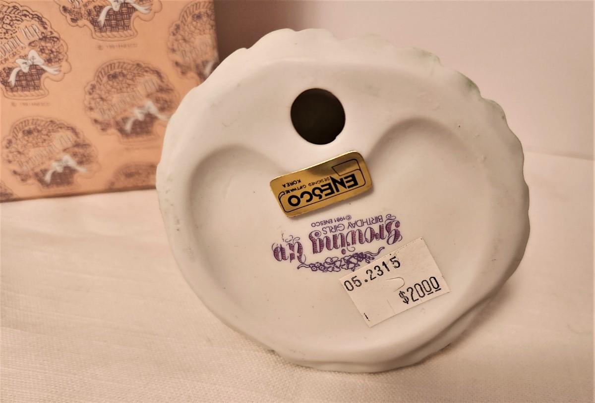 Remember these? Vintage bisque porcelain "birthday girl" figurine by Enesco, 6.75" tall, "age 15" - original price tag of $20.00. Has original box, good condition.