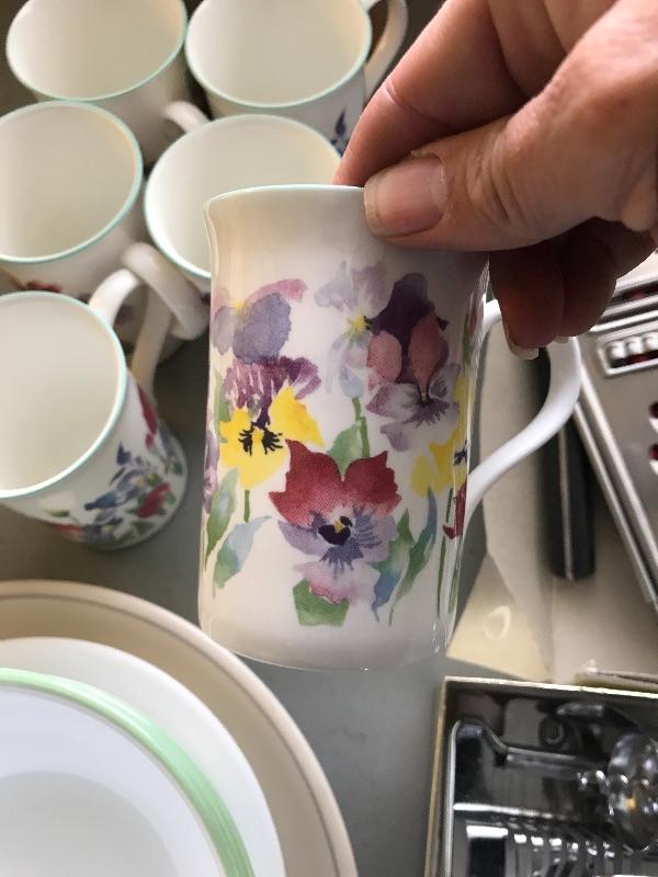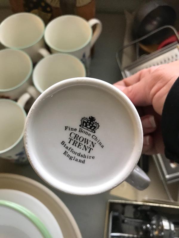 Lot of Crown Trent mugs, teapot , gravy , corelle bowls, and platter