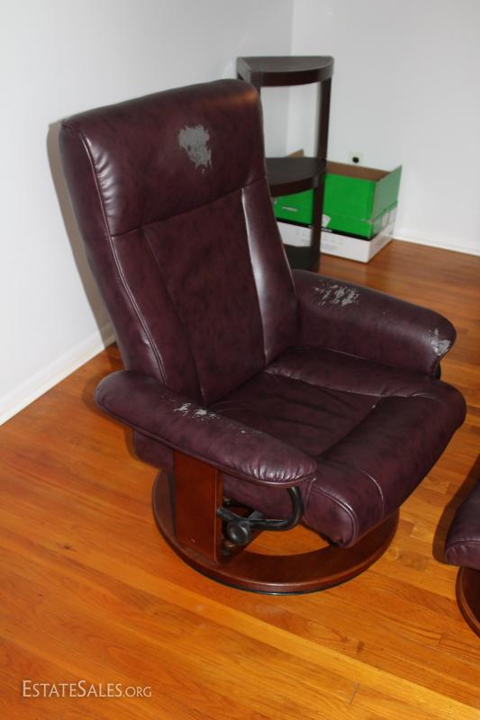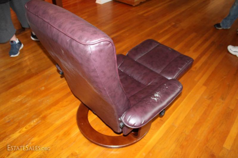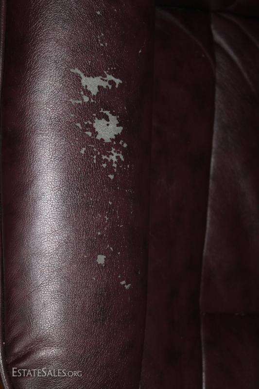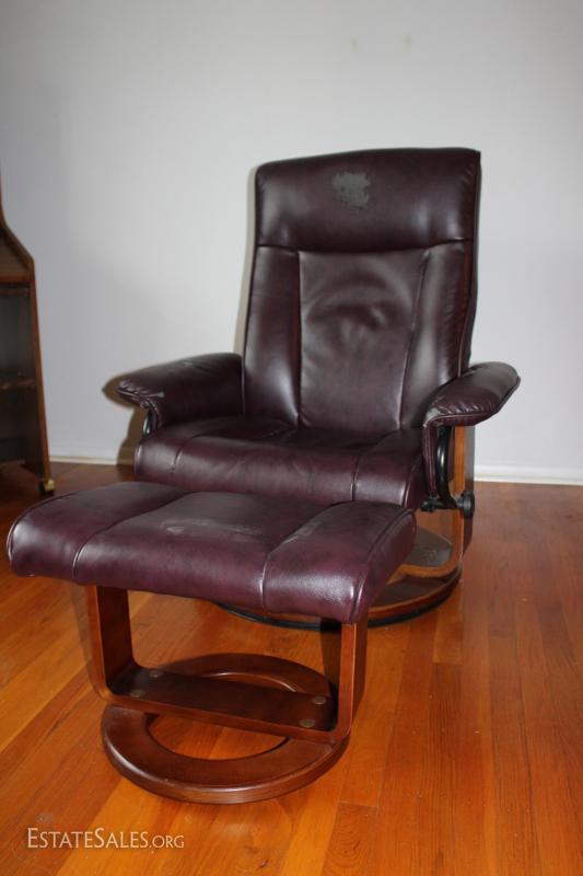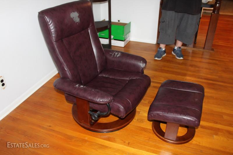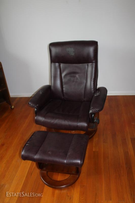 Lot # 5 is a Vintage Leather Armchair and Leather Ottoman.. The chair has some wear and tear, which is shown in the pictures. Measuring; 22" Width by 39" height.
